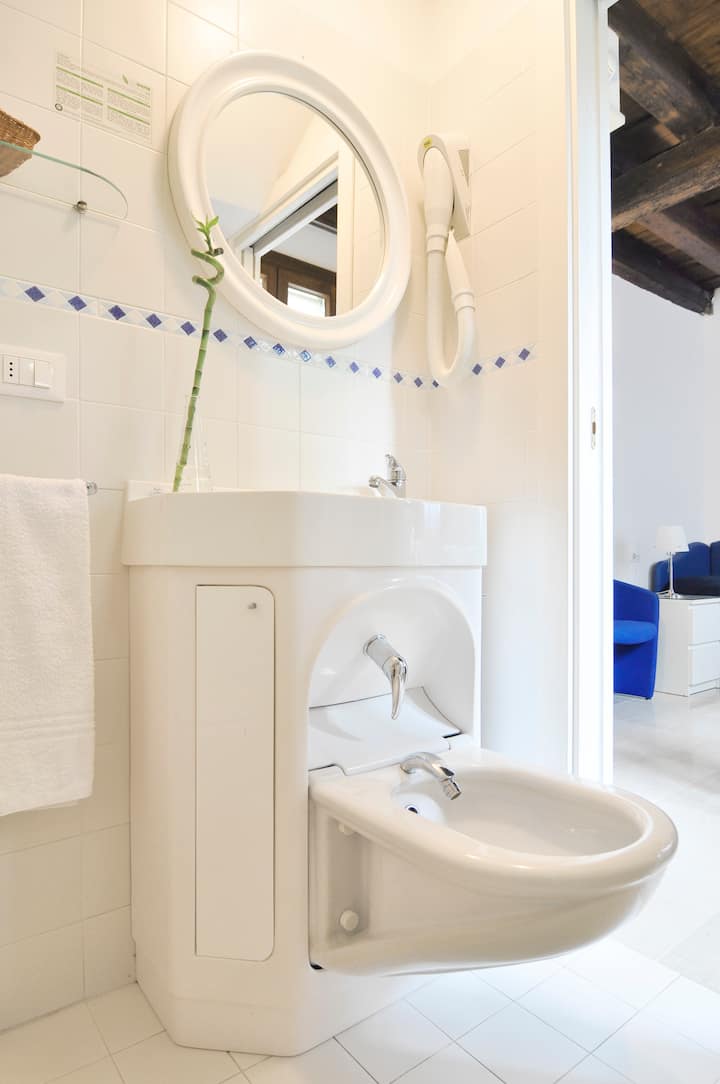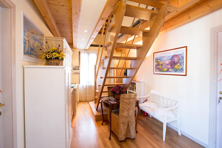 La posizione dell'appartamento è in una zona residenziale ma al contempo in un luogo strategico essendo a 10 minuti da San Marco e dai giardini biennale e a 15 minuti da Rialto. Inoltre in 5 min puoi raggiungere diversi approdi ( i principali sono fermata Arsenale e San Zaccaria ) dove prendere vaporetti per tutte le destinazioni, comprese le stupende isole Lagunari. Consigliata l'isola di Burano, dalle case coloratissime, dove puoi trovare i dolci tipici dell'isola i Bussolà o Buranelli ( al tuo arrivo ti indicherò la pasticceria migliore) e la scuola del merletto. Visitando il quartiere Castello puoi trovarti a passeggiare verso Campo de La Celestia, una zona completamente fuori dal circuito classico turistico e trovarti a percorrere una passerella (verso destra dalla fermata vaporetto )che costeggia le mura di confine Nord dell'Arsenale, fino ad arrivare ai Bacini , dove troverai un bar ristorante oltre il quale poter entrare all'Arsenale, uno dei luoghi simbolo di Venezia. Sempre nel sestiere Castello vale la pena visitare la chiesa di San Martino, la chiesa della Bragora, San Francesco della Vigna, San Giovanni e Paolo, Santa Maria Formosa, chiesa dei Miracoli e San Giorgio degli Schiavoni in fondamenta dei Furlani. Per una sosta piacevole e tutta Veneziana , sempre nel sestiere Castello vicino a casa ti consiglio l'Osteria a la Scuela, con personale meraviglioso e tipica cucina casalinga veneziana. ( se vai a mio nome avrai un trattamento speciale ) Camminando invece verso i Giardini Biennale sia dal caratteristico ponte di legno dell'Arsenale, o ponte del Paradiso, (5 min da casa) sia dalla Riva degli Schiavoni, puoi raggiungere Via Garibaldi, sempre piena di Vita Veneziana con i suoi negozi e le sue osterie tipiche . Potrai fermarti così tra i residenti di castello ad assaggiare "i cicchetti " della cucina tipica Veneziana. Proseguendo all'interno dei Giardini Biennale se si è in ascolto si assapora un'altra Venezia ,si può cogliere un tempo diluito, uno spazio sospeso, una pace ormai persa nei tempi quotidiani. Attraverso una bellissima passeggiata rilassante si arriva così al parco di sant'Elena la punta estrema di Venezia difronte all'isola del Lido.... ci sono Luoghi che si possono definire "cibo per l'Anima". Questo per me è uno di quei luoghi........... Continuando il nostro viaggio da San Zaccaria, 5 min a piedi dalla casa, con il vaporetto numero 20 potrai ammirare l'isola di San Servolo, ex manicomio, con il suo splendido parco, e proseguendo con lo stesso vaporetto l'isola di San Lazzaro Degli Armeni, uno scrigno di inestimabile valore oltre che luogo affascinante e ricco di spiritualità e storia. Prenotando potrai fare una visita guidata all'interno del Monastero dove vi è una tipografia importante e una biblioteca considerata un vero tesoro per la conservazione nelle sue sale più di 170.000 volumi tra cui manoscritti rarissimi( uno risalente addirittura al VI sec D.C ) e una serie di opere artistiche di immenso valore; ( da non perdersi la tela del Tiepolo, la mummia egizia, e una statua del Canova ). Sempre dalla fermata San Zaccaria puoi raggiungere la magnifica chiesa di San Giorgio e due fermate successive la famosa chiesa del Redentore alla giudecca, che puoi ammirare anche dalla Riva degli Schiavoni a due min di strada da casa. Prendendo la direzione Rialto invece ti addentrerai nella folla turistica. A fianco al ponte di Rialto vale la pena visitare il Fondaco dei Tedeschi, dove troverai lavori di artigianato veneziano e la famosa terrazza panoramica sulla città, ad acceso gratuito, da prenotare online. Da non perdere il traghetto in gondola anche molto economico : Da piazza San Marco e precisamente dalla fermata San Marco Giardinetti, c'è il servizio Gondola Dogana (chiude alle ore 18 ) dove puoi raggiungere la punta della Dogana in gondola, e da li costeggiare la famosa Basilica della Salute fino ad arrivare con una bellissima passeggiata alla fondamenta delle Zattere per gustare da una meravigliosa terrazza una pizza tutta italiana( consigliato ristorante a e oche). Se poi vuoi lasciare Venezia con un ricordo autentico e creato con amore, sarò felice di farti vedere senza impegno le mie maschere realizzate interamente a mano in carta pesta e dipinte con l'acquarello. Sono pezzi unici create con con tanto impegno e passione che rivelano il mio grande Amore per questa misteriosa Città..... Venezia... che scandisce i ritmi, Venezia... contraddizione apparente Venezia... Fragile e così Forte Venezia... labirinto d'acqua e pietra , di colori e suoni... Venezia grande Maestra il confine tra Te e Lei è solo apparente, è solo nell'uomo che non vede ciò che si cela agli occhi del mondo, "quelli che guardano fuori"... Venezia è musica... ascoltala e ammirala con " gli occhi che guardano dentro " gli occhi del cuore... buona magica laguna..... kristj