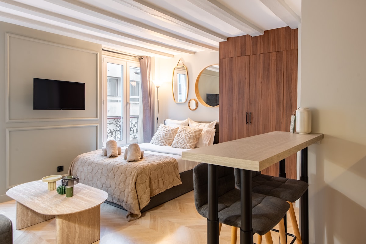 Eiffel Tower View | Elegant Studio Balcony + A/C