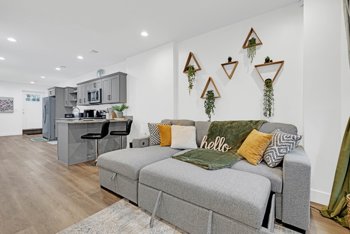 Rilassati e ricaricati in quest'oasi di quiete ed eleganza. Situato nella storica Bronzeville, il nostro moderno monolocale vanta un soggiorno open space, finiture eleganti e tanto spazio per ospitare fino a 3 persone. Il nostro monolocale con giardino si trova a pochi passi dalla stazione della Green Line, a 10 minuti di auto dal Downtown Loop, a 15-20 minuti dall'aeroporto Midway, a 5 minuti dal lago Michigan e a 5 minuti dal centro congressi McCormick Place, dall'IIT e da Hyde Park/Università di Chicago.