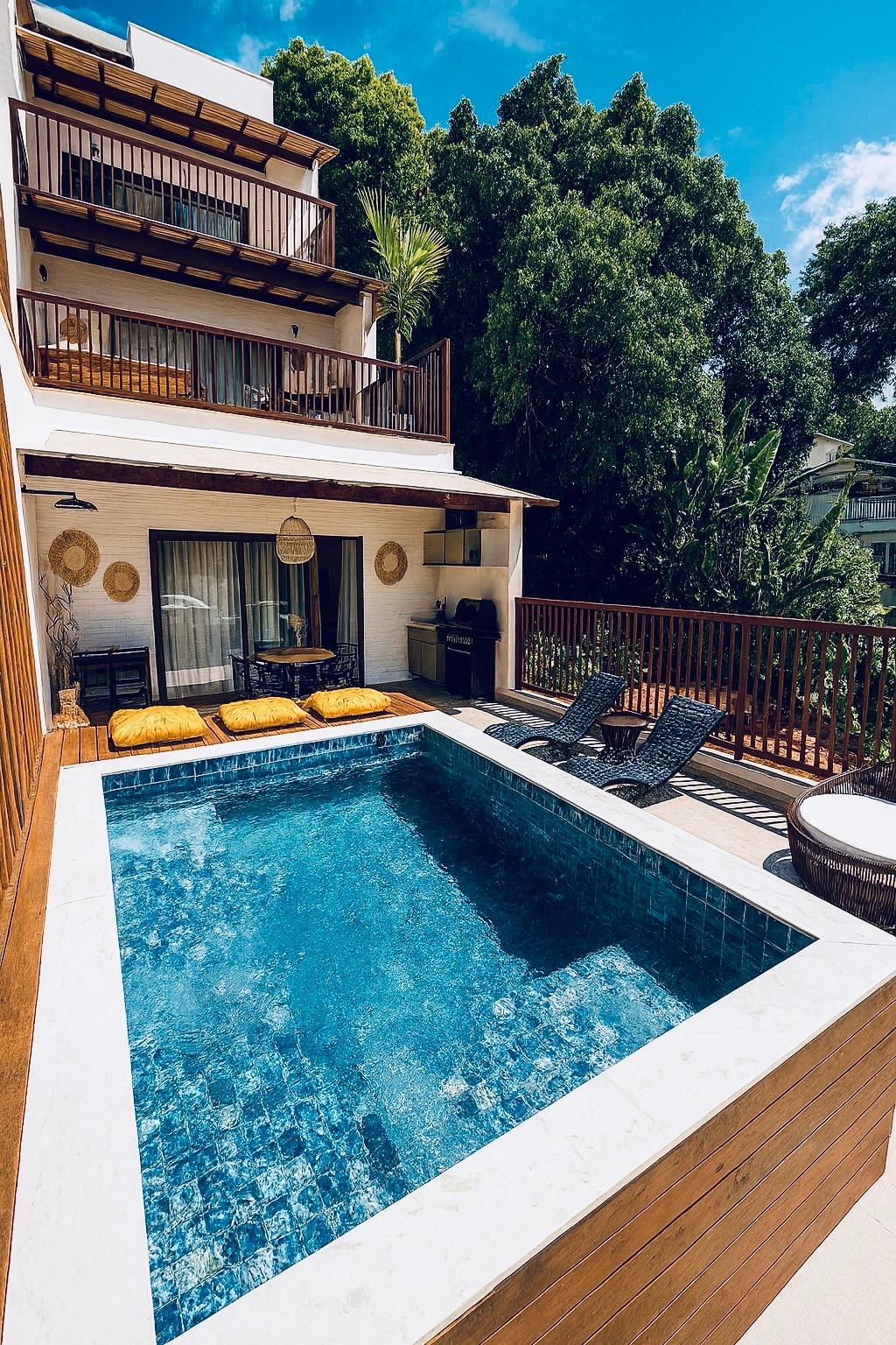 In cima al Morro de São Paulo, Canto das Águas è un'oasi con viste mozzafiato sul mare e sul tramonto. Dalla piazza centrale a qui ci sono 15-20 minuti a piedi (1 km), con alcune pendenze e gradini. La ricompensa è tutta la bellezza naturale esclusiva e la privacy. Ideale per coppie, amici o viaggiatori singoli che vogliono svegliarsi con il blu dell'oceano. Siamo a 80 metri sul livello del mare, con accesso dal condominio ai sentieri per le spiagge di Porto de Cima, Ponta da Pedra, Praia da Argila e Gamboa.