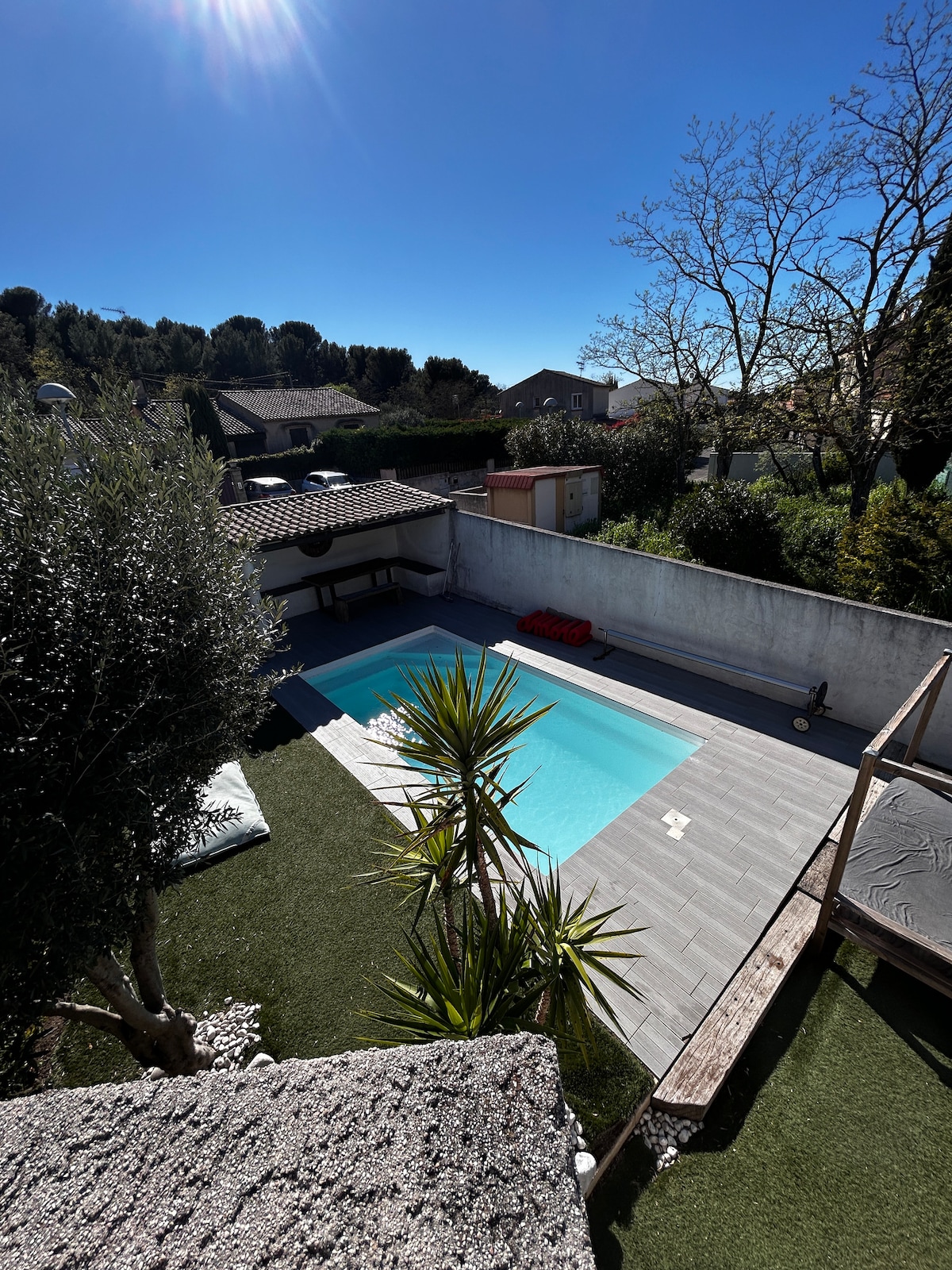 Villa 148m2, swimming pool 6x3m, heights of Carnoux in Provence, between Cassis and Marseille, close to the calanques. Absolute calm Private pool, sunbeds, umbrellas 3 terraces with tables and chairs. Barbecue Kitchen all comfort appliances: dishwasher, washing machine, dryer, iron and ironing board, coffee maker... 1 bedroom double bed, 1 bedroom 2 small beds, 1 sofa bed, bathroom with shower, separate toilet. Linen and towels provided. High chair, bed, baby bath