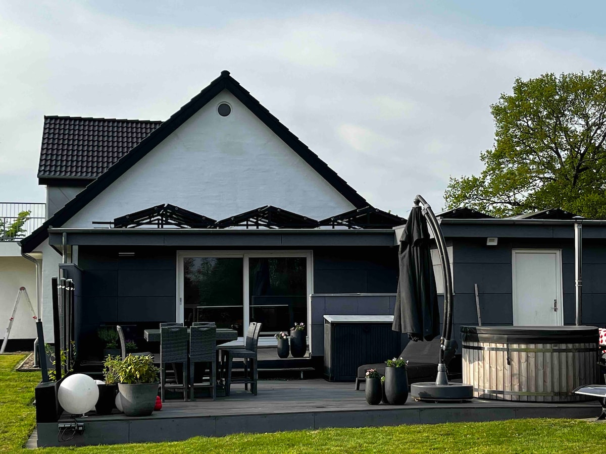 Avete bisogno di una vacanza? Ben posizionato nello Jutland meridionale, nella natura rurale, troverai la nuova casa vacanze The Blueberry Farms. Una casa intera, recentemente ristrutturata e situata su un terreno naturale idilliaco con lago privato, foresta e campo di mirtilli. Battute di pesca, gite in bicicletta, una nuotata nella piscina pubblica o una partita a golf? Questi sono tutti a breve distanza in bicicletta dall'azienda agricola. Le possibilità di "staccare la spina" sono molte e il cielo è l'unico limite! Cordiali saluti, Niels e Helle