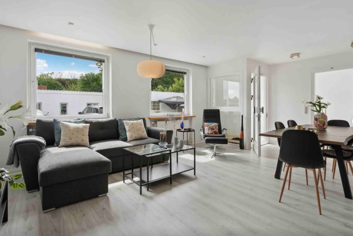 Incantevole casa a schiera nel centro di Aabenraa situata in una strada tranquilla senza traffico. La casa a schiera è di 117 mq e dispone di due camere da letto con letti matrimoniali e un'ampia zona giorno al 1° piano (con divano letto). Ampio bagno nuovo e grande zona cucina con zona salotto per massimo 8 persone. Sul retro della casa c'è un ampio cortile privato che può essere liberamente utilizzato dagli affittuari. La casa sarà disponibile esclusivamente per gli inquilini e completamente privata.