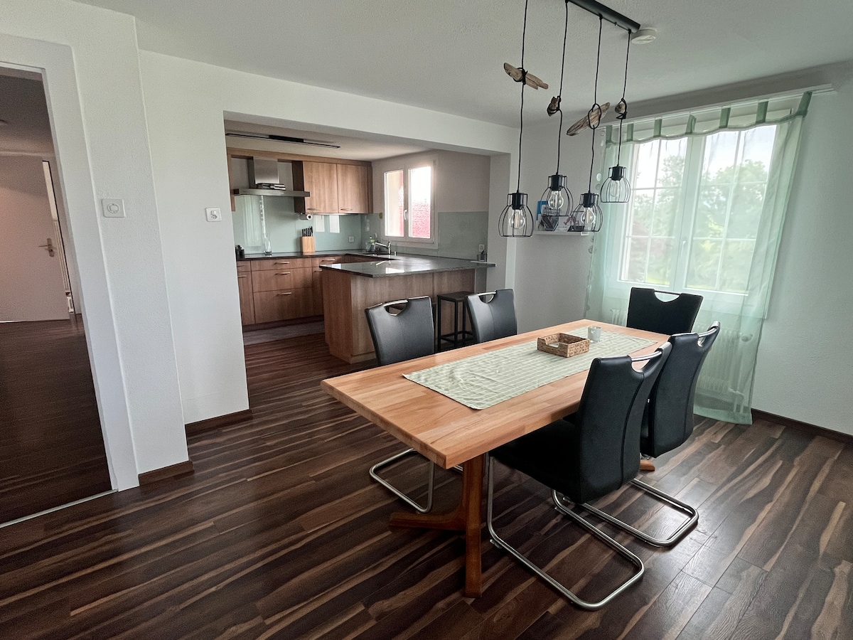 Our apartment on the upper ground floor of our chalet in the Lucerne Seetal offers plenty of space, relaxation and peace with the best view of the Alps, making it ideal for families, friends or business travelers. Look forward to a homely charm, modern amenities and friendly hosts (family.) The spacious kitchen-diner, the cozy living room and a bright, spacious bathroom are just as impressive as the central location with quick connections to Lucerne, Zug, Zurich &the surrounding Alpine region.