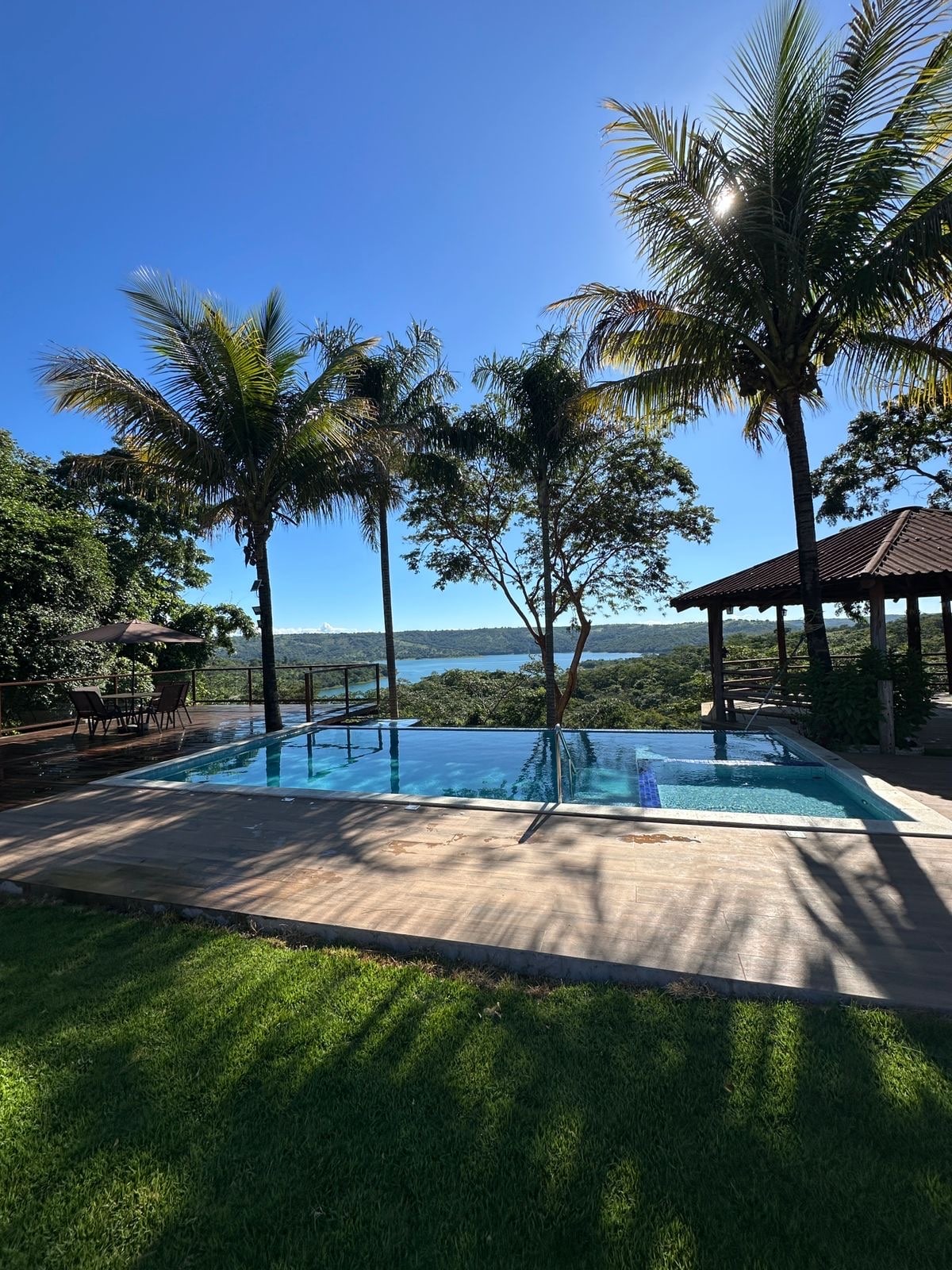 Requinte, conforto e lazer completo com vista deslumbrante para o lago corumbá 4. Divirta-se com seus famíliares e amigos em alto estilo nesta propriedade com piscina aquecida solar e elétrico, sauna, lago ornamental e sl de jogos São 5 quartos com ar-condicionado sendo 3 suítes , uma delas master com frigobar, hidromassagem e varanda Cozinha completa equipada com Eletrodomésticos, panelas e utensílios Condomínio fechado com portaria 24h acesso bloquetado ao lago e cachoeirinha privativa