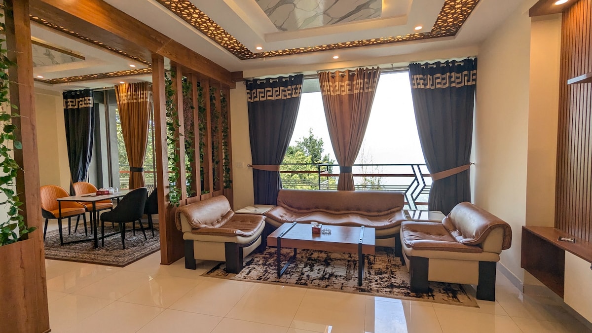 Se ami la natura e i panorami, allora questo è il posto che fa per te, con un letto rialzato di 100 piedi di fronte a un'enorme vetrata con nuvole nebbiose, piogge e bellissime nevicate, questo design creativo ti porta lontano da questo mondo L'appartamento è progettato per offrire viste mozzafiato da ogni stanza Le viste accattivanti dal vetro e la straordinaria terrazza ristorante ti regalano una sensazione di benessere in ogni momento del tuo soggiorno Assistente dedicato, ascensore per gli ospiti, telecamere a circuito chiuso, riscaldatori, geyser, parcheggio in garage, servizio navetta aeroportuale, luci automatiche durante il caricamento e altro ancora...