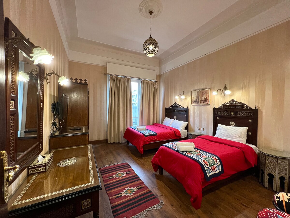 Embrace Arabesque splendor with Mint Stays Egypt this 4-bed downtown apartment.Just steps from Khan el Khalili, Tahrir Square, Moez Street, and Abdeen Palace and only a 15-minute drive to the Pyramids and the Grand Egyptian Museum. Dive into Cairo’s rich history and culture. With stores and beloved cafes at your doorstep, indulge in the city's charm. Housed in a historic building once inhabited by movie legends, enjoy 24/7 security and attentive building managers, ensuring peace of mind.