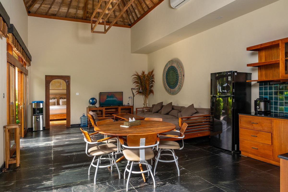 Nascosto nel cuore della lussureggiante giungla di Ubud. Più che un semplice soggiorno: è un viaggio nel cuore dell'anima artistica di Bali. Riconnettiti con la natura. Svegliati con le melodie degli uccelli e rilassati sotto vivaci alberi da frutto. Passeggia tra le risaie panoramiche, concediti sapori locali in affascinanti caffetterie o semplicemente rilassati nel tuo rifugio verde privato. A soli 10 minuti dall'iconica foresta delle scimmie di Ubud, dai vivaci mercati e dal fascino culturale del Palazzo di Ubud, ancora beatamente appartato per la massima pace.