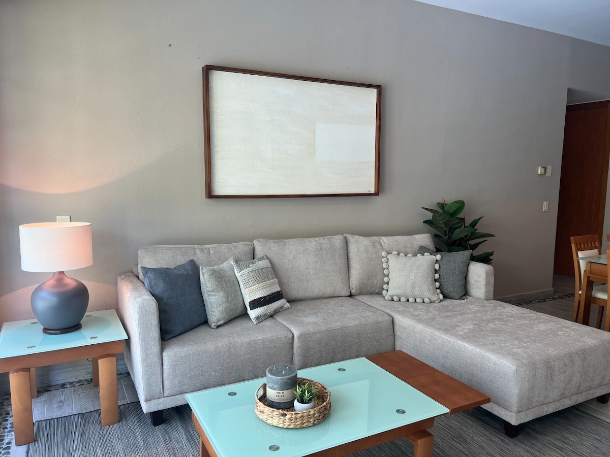 Appartamento 100 per accogliervi nella vostra prossima vacanza. Vieni a goderti Acapulco Diamante, situato all'incrocio con l'autostrada Diamante, a 5 minuti di distanza e anche a 5 minuti dall'aeroporto di Acapulco. Abbiamo parcheggio, piscine, Clubhouse, campi da tennis e paddle, ristorante e altro ancora, sicurezza 24 ore su 24, un'atmosfera totalmente familiare, bellissime passeggiate per una passeggiata mattutina e accesso con costo preferenziale al beach club e al parco acquatico Mayan Palace, vieni a provarlo!