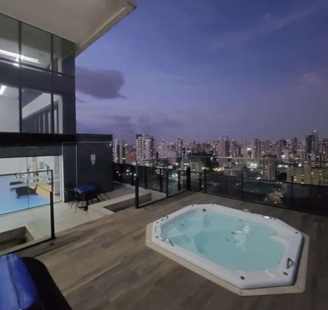 Loft completamente arredato, in un edificio moderno, con diverse opzioni per il tempo libero, piscina all'aperto e al coperto, palestra in terrazza e terrazza con vasche idromassaggio per rilassarsi. Il loft dispone di un letto matrimoniale e un divano letto. Si trova vicino a Praça Bastista Campos, una delle piazze più belle di Belém.