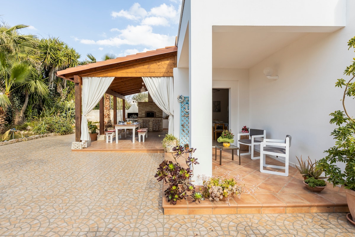 LUXURY COUNTRY VILLA privata a Commenda Campomarino di Maruggio in Puglia con corpo centrale con ampio salone e nuova ampia cucina attrezzata, 2 camere indipendenti con bagno privato e 3 suite indipendenti con bagno privato angolo cottura e mini frigo, tutte climatizzate.Ampio giardino con piscina e doppio barbecue americano.Posti auto recintati. A 1000mt circa dal mare BANDIERA BLU spiaggia d'Ayala, Commenda,Posto Nove,spiaggia LGBT LGBT friendly