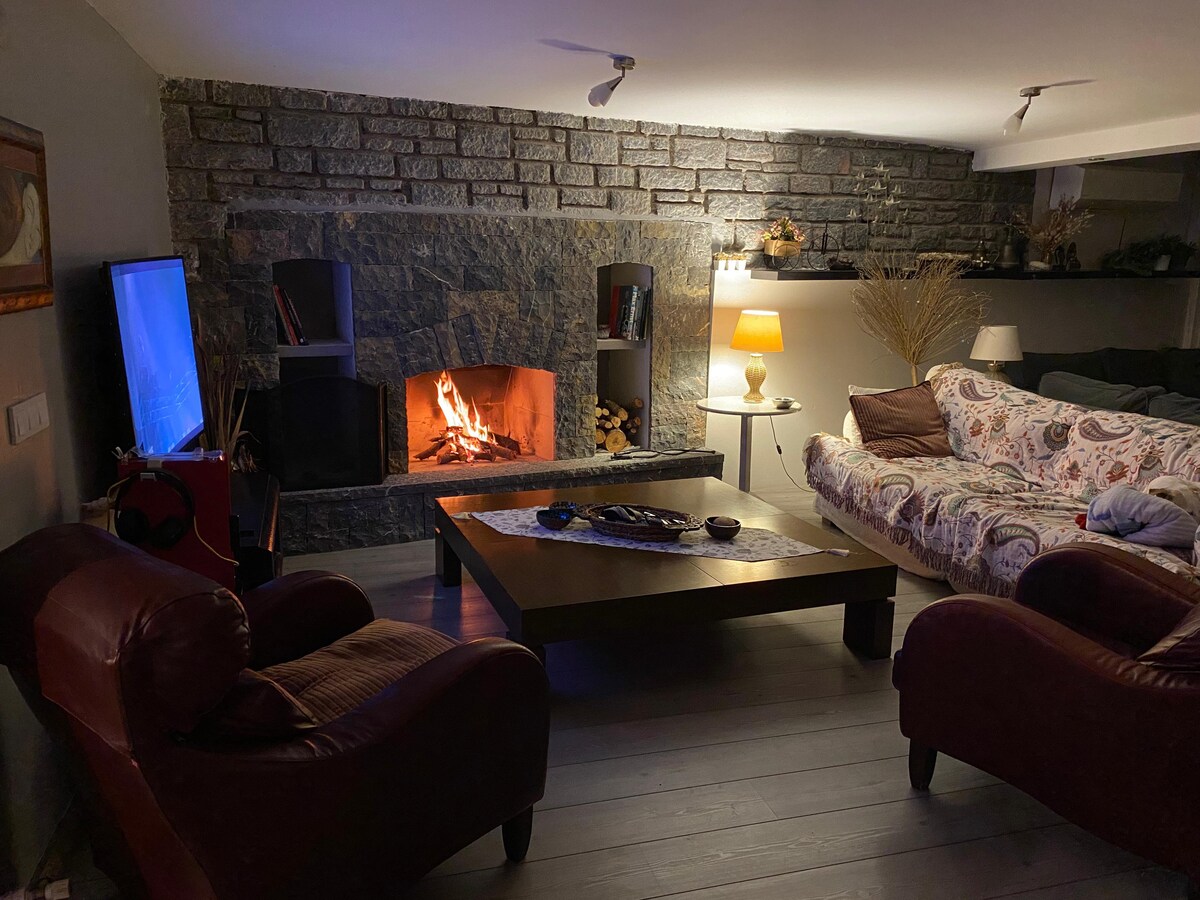 Una splendida vista. Goditi un'altalena e un barbecue sulla terrazza. Riscaldamento a gas naturale d'inverno. Una camera da letto e due salotti aperti. La cucina a vista. Un letto matrimoniale grande in camera da letto. Un totale di 4 divani letto nei salotti. Grape sul balcone al piano di sotto, menta sulla terrazza.Pulito, comodo. Luglio. La nostra vista è in ogni ambiente della nostra casa. Pace e gioia insieme.