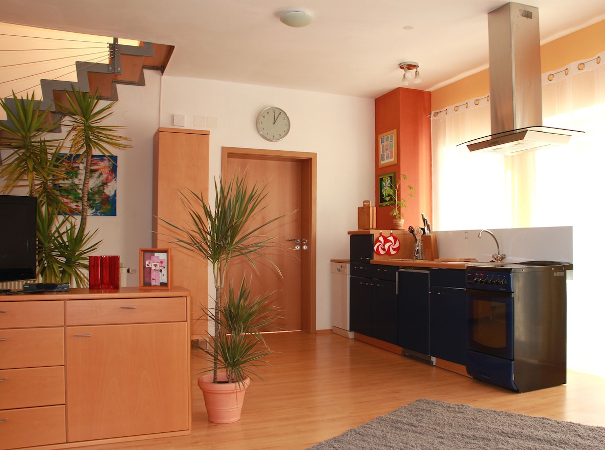 L'appartamento si trova nella mansarda di una casa borghese restaurata con cura all'inizio del secolo a Creglingen (17 km da Rothenburg) Al piano terra c'è una caffetteria dove è possibile fare colazione durante la settimana. (inclusa) Nella casa accanto c'è la nostra panetteria. È possibile parcheggiare le biciclette. Previo accordo, gli ospiti possono dare un'occhiata al panificio. L'appartamento, la cucina e il bagno sono dotati di tutto il necessario. Non sono ammessi animali domestici