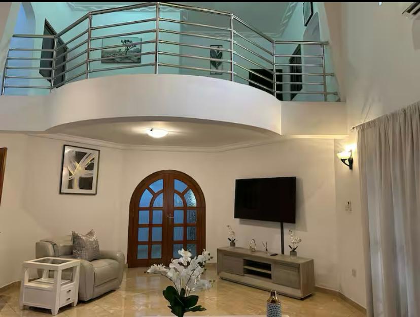 ☞ Private pool with lounge seating (3.5 ft. shallow end, 6.5 ft. deep end, 10x23 pool) 🏊 ☞ Starlink Wi-Fi (250+ Mbps) 🌐 ☞ 24/7 power (solar + backup generator) ⚡ ✭ Cozy King Size Beds (180x200 cm) 🛏️ ✭ Optional chauffeur & chef services 🚘👨🏾🍳 ✭ Daily Cleaning available 🧹 ☞ 3850 sq. ft home ☞ Smart TVs + premium Samsung 11.1.4 Surround Sound Bluetooth speakers 🎬 ☞ Parking (onsite, 4 cars) ☞ Washer + Dryer ☞ Fully equipped + stocked kitchen ☞ A/C 》25 - 30 mins to the airport