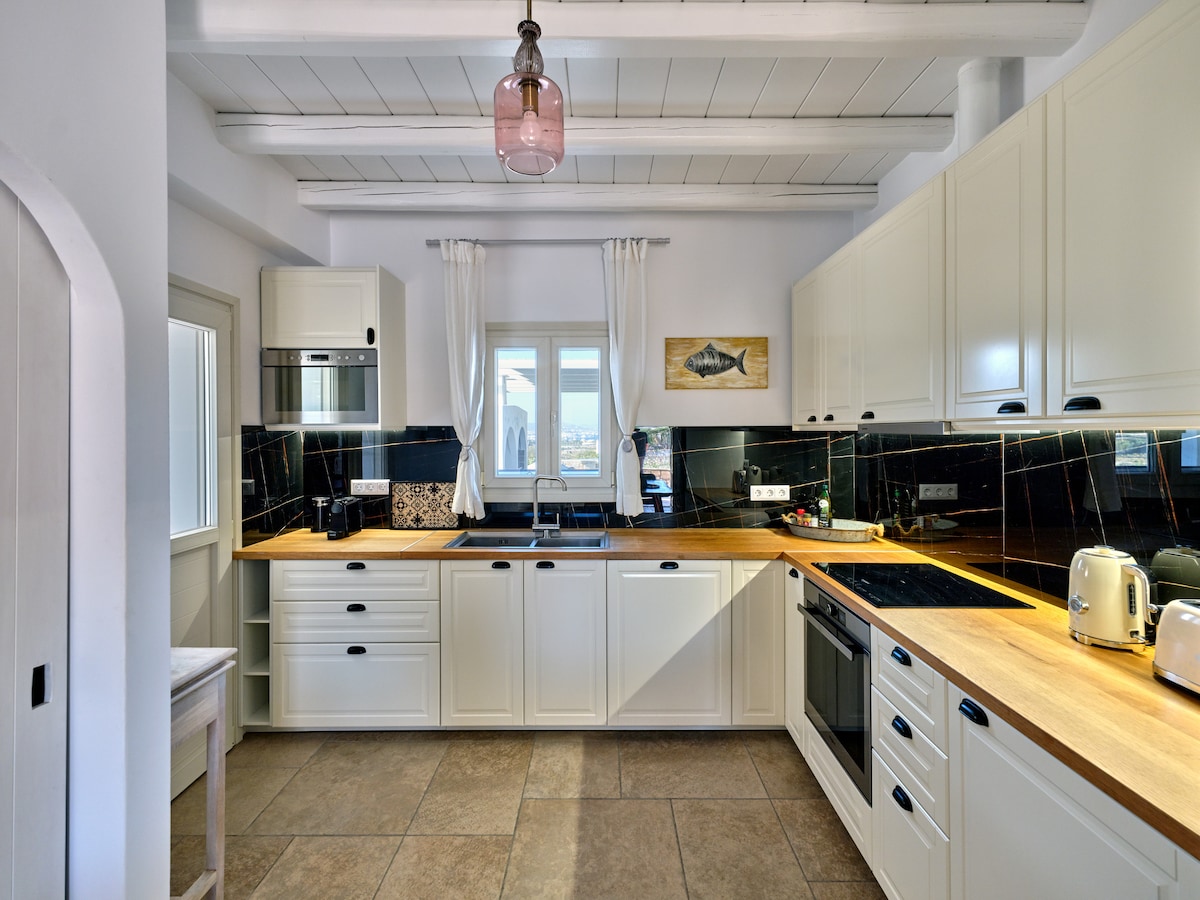 Un bellissimo appartamento ristrutturato nel cuore di Paroikia (Paros), situato nell'insediamento tradizionale e circondato dagli incantevoli vicoli dell'isola. L'appartamento offre un ampio balcone privato nella parte superiore, dove potrai rilassarti e goderti la splendida vista di Paroikia! Adatto soprattutto a coppie e famiglie di 3 o 4 persone! Ci vuole un minuto a piedi per raggiungere la strada centrale di Paroikia, con negozi, bar e ristoranti, e 10-15 minuti per arrivare al porto di Paros.