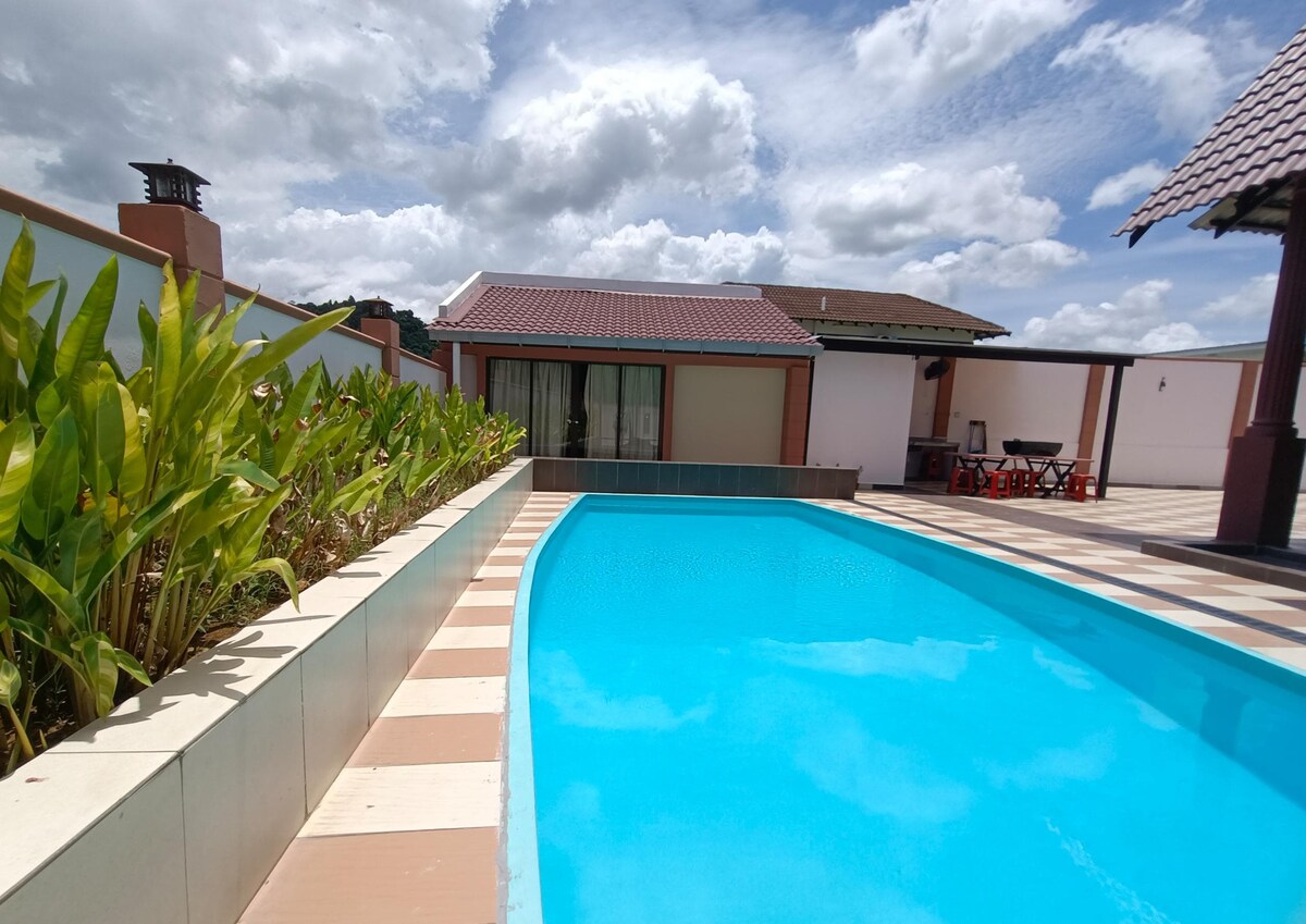 Concetto inglese moderno con vibrazioni pacifiche. 4 camere da letto completamente climatizzate 3 bagni con scaldabagno Materasso e cuscini aggiuntivi Servizi: • Wifi disponibile • TV Android con Astro Channel, Sport, Netflix • Fornello, frigorifero, distributore d'acqua • Telecamera a circuito chiuso all'aperto Regola importante: Animali domestici, carne di maiale e alcolici sono ASSOLUTAMENTE VIETATI