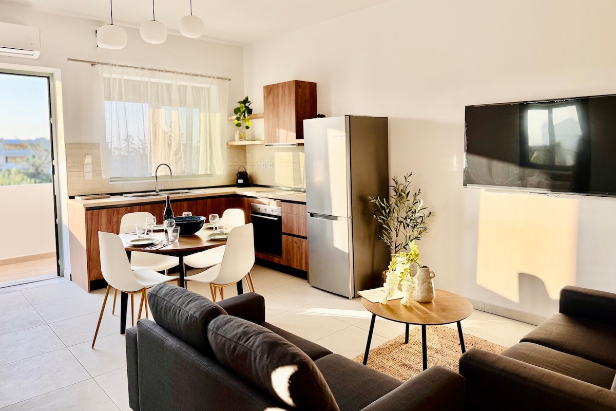 Τhe apartment is located in Archangelos, it is 50 sq.m. in an ideal location with easy access to restaurants, supermarkets, and cafes. Within a 5-minute drive is the renowned Stegna beach, 5 kilometers away is Tsambika beach and in 30 minutes, you reach the city of Rhodes. The apartment is brand new, with the first year of operation being 2024. We made sure to provide everything needed to make your stay comfortable and pleasant.