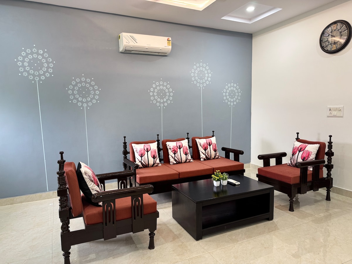 Benvenuti a The Homey Hideaway, la tua elegante vacanza nel cuore di Agra! Questo accogliente rifugio si trova in una posizione privilegiata, a pochi minuti dall'iconico Taj Mahal, dal Forte di Agra, da ristoranti, caffetterie e luoghi di interesse culturale. Ideale per famiglie, viaggiatori d'affari, piccoli gruppi, il nostro spazioso appartamento con 1 camera da letto offre la perfetta combinazione di comfort e praticità. Goditi una cucina completamente attrezzata, letti comodi e un'ampia zona giorno. Homey Hideaway ha tutto il necessario per un soggiorno memorabile ad Agra.