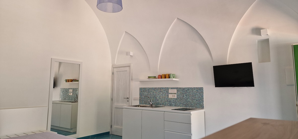 La Casa con ingresso indipendente è parte di uno Stabile "Rurale" di inizio '900. Bagno privato, letto matrimoniale, divano letto, frigo da camera, TV, WI-FI ed una romantica veranda con "vista da cartolina" dove poter sorseggiare un drink, un infuso, fare colazione o addirittura prendere ispirazione ed usarla come "workstation". L'accesso è agevole dalla strada o dal parcheggio, (eventualmente disponibile), attraverso il giardino di limoni, la corte privata e pochi scalini.