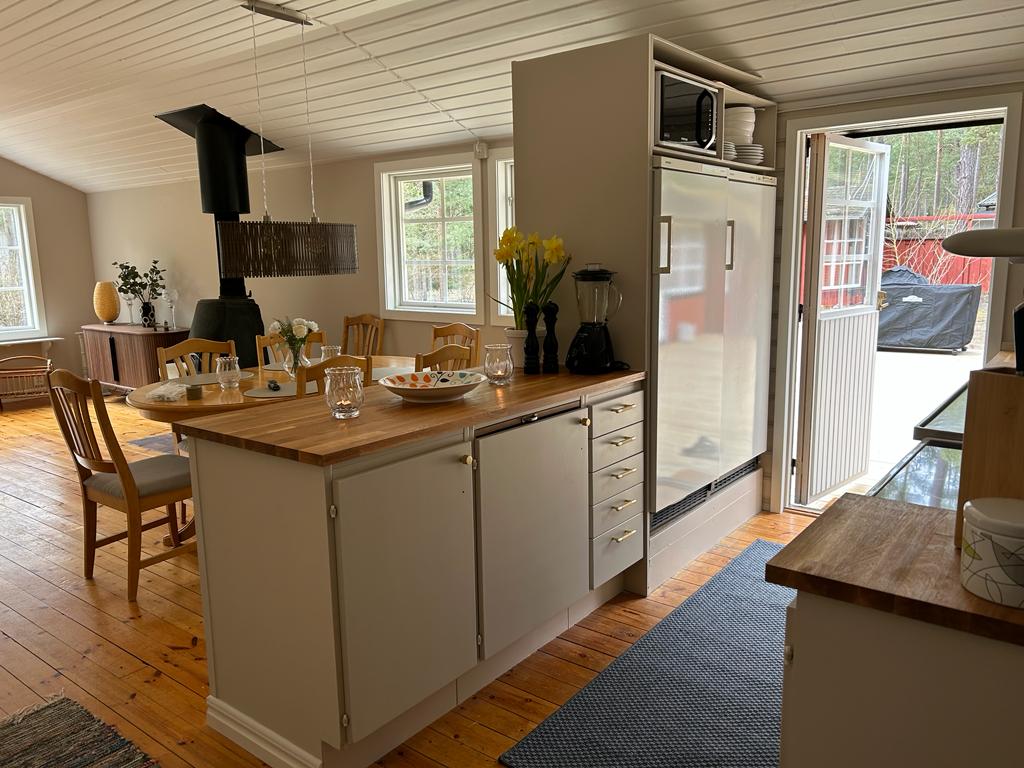 Alloggio estivo esclusivo a Åhus Äspet. Composto da un edificio principale e da un cottage usa e getta per gli ospiti. La struttura si trova a pochi passi (circa 500 m) da Revhaksstranden ad Åhus. L'edificio principale è composto da cucina completa con piano cottura, lavastoviglie, frigo e congelatore e macchina per il caffè. La cucina è integrata con il cibo e il soggiorno. L'altezza del soffitto gratuito di 4 m e la finestra panoramica offrono un'atmosfera aperta e personale. Il cottage ha una camera con un letto matrimoniale e un letto singolo, un soppalco con vista sul cibo e sulla zona giorno.
