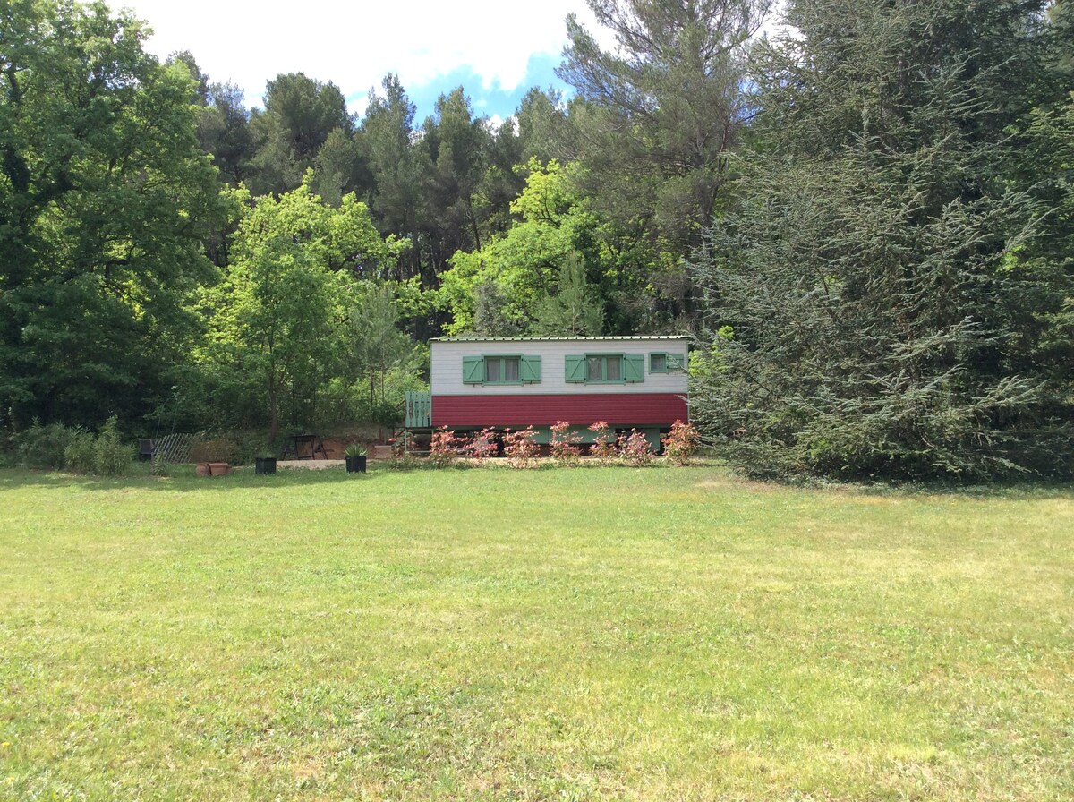 Roulotte in legno con tutti i comfort in grande proprietà senza vis-à-vis , piena natura ma a meno di 5 km dal centro di Aix, 2 kms zona di attività di Milles, 1 km dalla zona commerciale ,soggiorno cucina con tv , camera da letto con letto in 140 bagno con doccia e wc, riscaldamento, esterno attrezzato. Parcheggio privato. Lenzuola e asciugamani forniti, letto fatto. Pied-à-terre ideale per visitare la Provenza:Arles, Luberon, Marsiglia, Avignone, il mare e la Sainte Victoire dove lavorare nelle vicinanze. Spa opzionale
