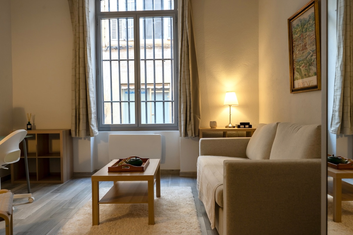 Appartamento ristrutturato nel centro storico della città, aria condizionata e wifi, dotato di una cucina con forno, piano cottura e frigorifero, un soggiorno con divano letto e tv, una zona notte con letto matrimoniale, un bagno con cabina doccia e lavatrice A due passi dal Cours Mirabeau, dal mercato di prodotti locali e di fiori Parcheggio a pagamento a 10 minuti a piedi , Mignet o Bellegarde Non sono ammessi neonati e animali Ideale per scoprire la nostra bella città di Aix en Provence!