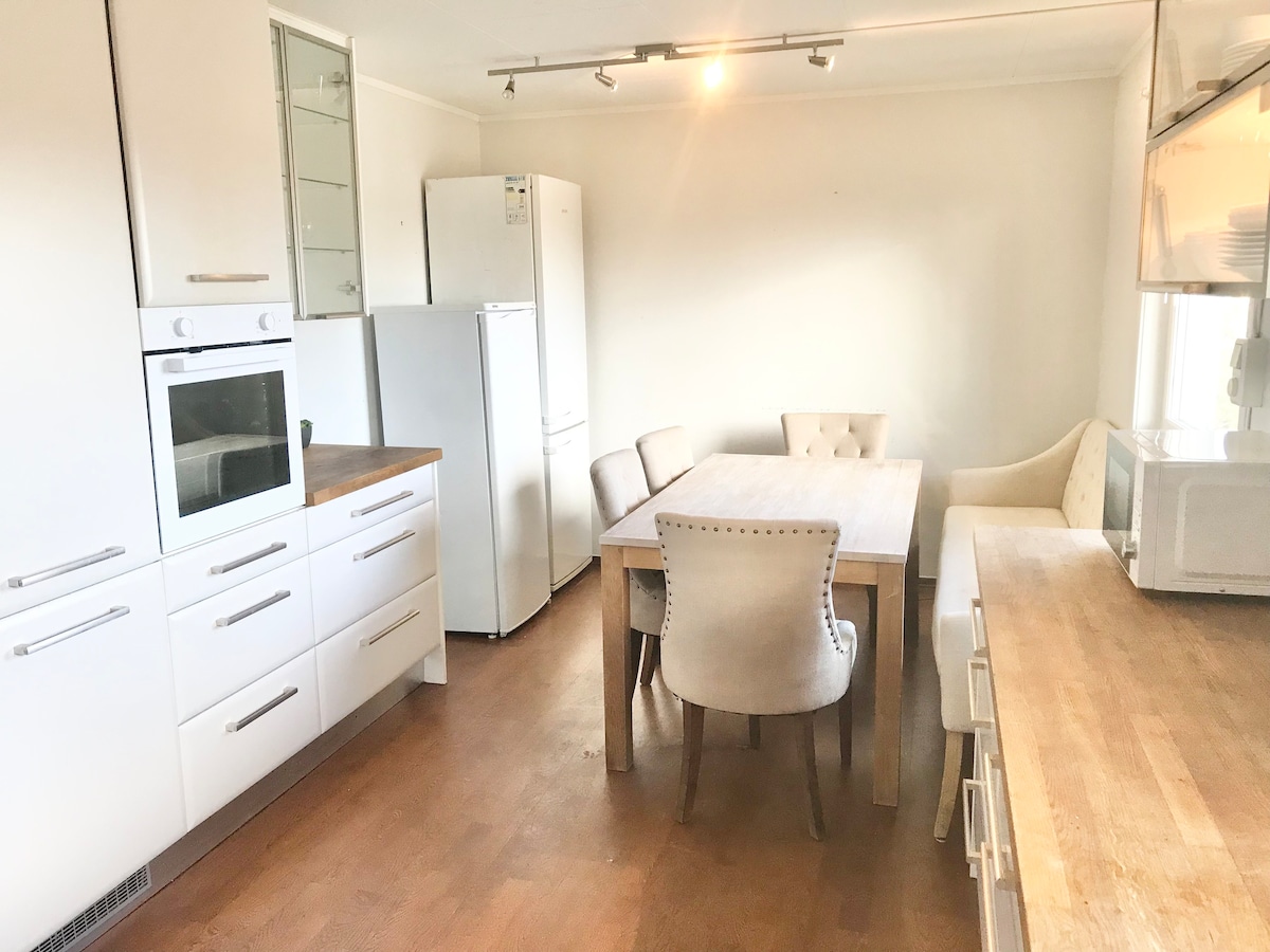 Alloggio semplice, accogliente e tranquillo. Accanto a Blaker skanse. A breve distanza dal treno. Camera da letto, soggiorno e bagno nuovo. Divano letto in salotto. Cucina non adeguata, ma frigorifero (frigorifero/congelatore), forno a microonde, bollitore, caffè e tè. Possibilità di organizzare un'altra porzione. Principalmente per 1-2 persone se soggiorni più lunghi, ma è possibile fare un divano letto nel soggiorno.
