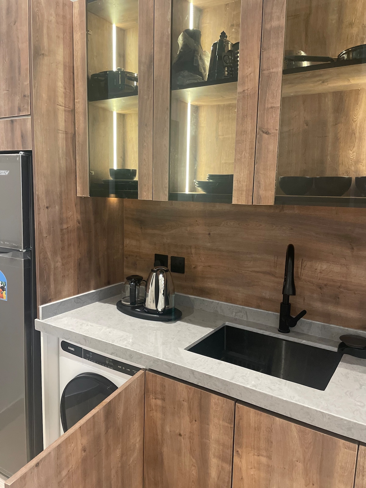 Un appartamento elegante e pratico con ingresso privato direttamente sulla strada, perfetto per chi viaggia da solo o per coppie in cerca di comfort e una privacy. Arredi moderni, comodo letto matrimoniale, enorme TV da 70 pollici e accogliente angolo caffè e snack ☕️ Situato in una zona tranquilla, ma vicino a tutto: ristoranti, bar, negozi e altro ancora. Possibilità di parcheggio gratuito proprio davanti alla porta 👌 Ottimo per soggiorni brevi o viaggi di lavoro. Prenota subito e goditi un'esperienza comoda e senza intoppi!