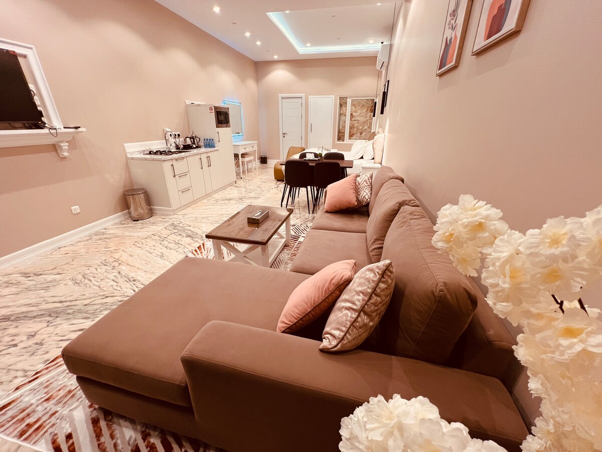 شقة أنيقة وعملية دخول ذاتي استمتع بإقامة هادئة ومريحة ، مناسبة للعائلات والأفراد، وتقع في موقع مميز قريب من الخدمات ، نظافة وتعقيم قبل كل ضيف قريبة من المطاعم، المقاهي، الأسواق والخدمات الأساسية. الديكور عصري، السرير مريح، والتلفزيون 75 بوصة! وفيه ركن قهوة وضيافة يفتح النفس والموقع؟ هادئ وقريب من كل شي ، وكل اللي تحتاجه. والمواقف متوفرة قدام الباب مناسبة جداً لرحلات العمل أو الإقامات القصيرة. احجز واستمتع بتجربة بسيطة ومريحة!