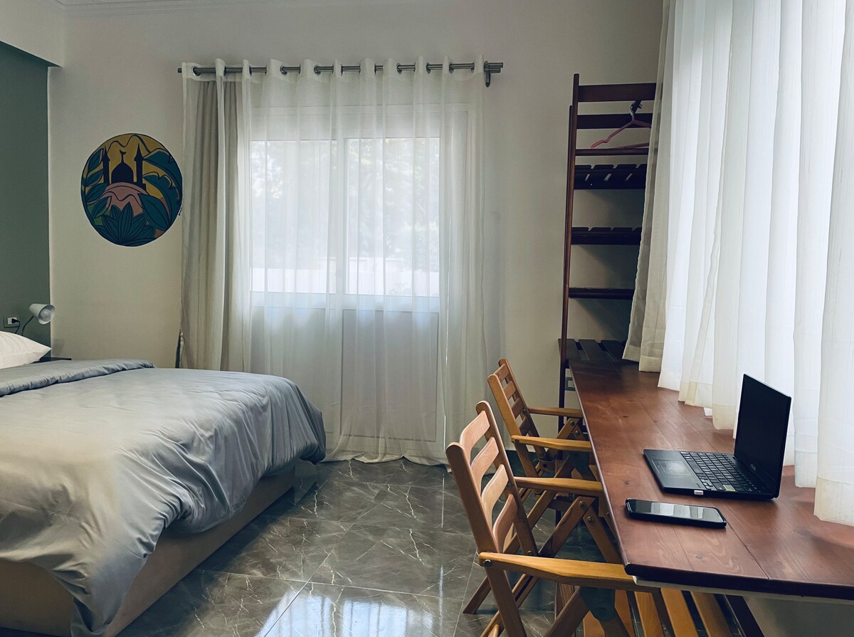 Realizzato per il viaggiatore vivace in cerca di un mix perfetto di relax e connessione nel cuore del Cairo, dispone di un morbido letto di 140 cm, decorato con biancheria morbida. Due eleganti comodini offrono dei luoghi comodi per l'essenziale, mentre uno spazioso guardaroba mantiene la tua attrezzatura da viaggio organizzata e accessibile. L'intrattenimento incontra la versatilità con la smart TV e una scrivania/cassettiera multifunzionale. Esci verso la tua terrazza privata, offrendo una splendida vista nei quartieri più verdi.