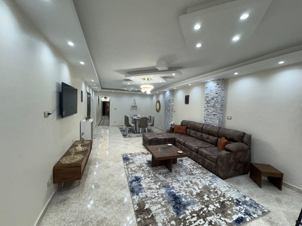 Ti diamo il benvenuto nella tua casa lontano da casa a Saba Basha, Alessandria! Questo appartamento accogliente e luminoso offre il perfetto mix di comfort, comodità e posizione, A soli 2 minuti a piedi dalla Corniche e dalla metropolitana, è ideale per famiglie, studenti, coppie e famiglie di pazienti in cerca di un soggiorno facile e rilassante nel cuore della città. a pochi passi dall'Università di Alessandria, dal Four Seasons Mall & Hotel, dai caffè e dai migliori ospedali.