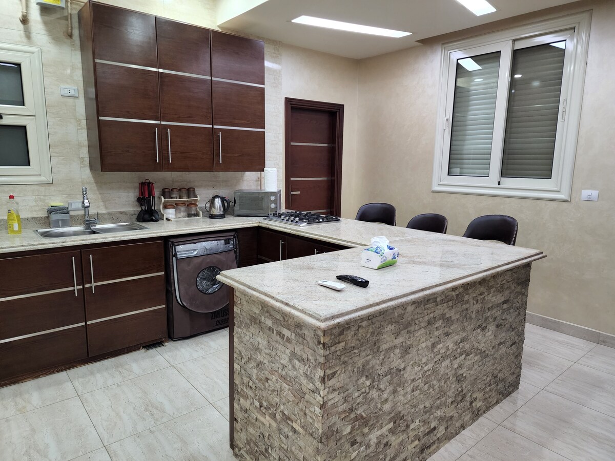 La tua famiglia sarà vicina a tutto soggiornando in questo posto situato in posizione centrale. tutto in questo appartamento è nuovo ti sembrerà di vivere in un hotel e anche un posto molto sicuro è molto vicino al Nilo e tutti i servizi sono disponibili 24 ore su 24 come، supermercato di، farmacia ospedaliera, ristoranti, zona bambini e abbaiare e se hai bisogno di servizio di pulizia o servizio in camera sono disponibili