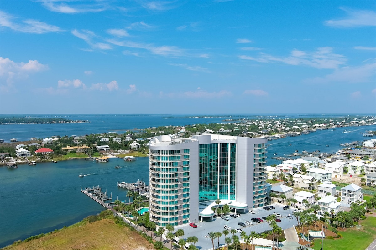 Lussuoso angolo ristrutturato con 1 letto/1 bagno sul lungomare! Pavimenti piastrellati, camera da letto privata con letto king-size, letti a castello (piccoli letti singoli) nel corridoio, divano letto queen-size. Cucina completamente attrezzata con elettrodomestici nuovissimi. Balcone d'angolo coperto sul lungomare con griglia! A 5,6 km dalla spiaggia! Ristoranti in loco, vita notturna, cinema, porto turistico con barche a noleggio/crociera, sala giochi, ruota panoramica, negozi, Wharf Ampitheater, piscina dell'Oasis Resort con piscina con onde, fiume lento, scivoli, vasca idromassaggio e bar/ristorante stagionale a bordo piscina!