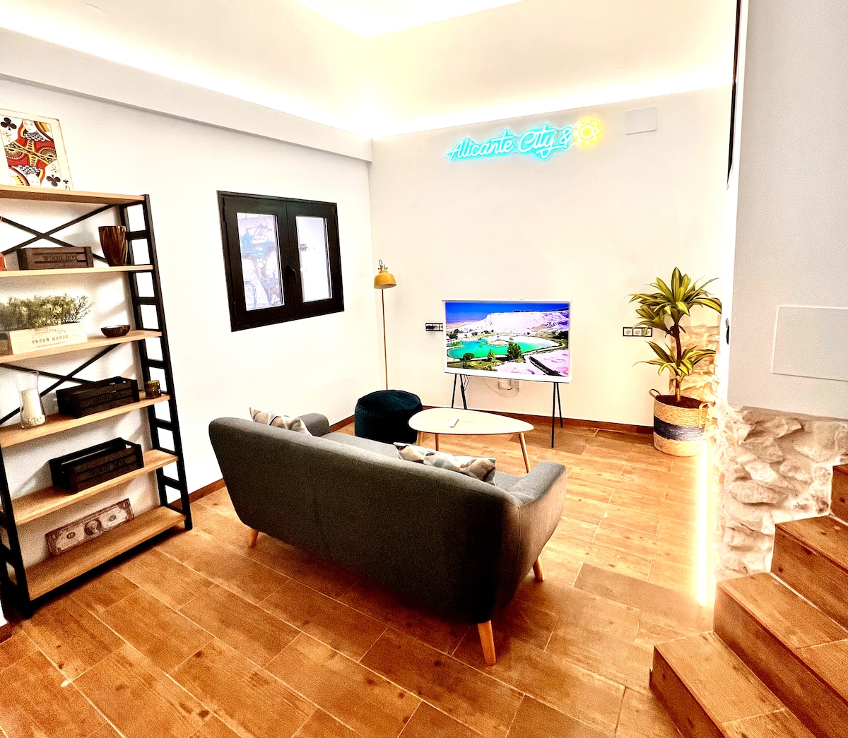 Splendido loft appena ristrutturato, ideale per una fuga in coppia. Dispone di un letto matrimoniale, un comodissimo divano letto, un soggiorno e una cucina a pianta aperta. Bagno chiuso e piccolo patio privato da godere in tranquillità. WIFI ECCELLENTE. È tutto nuovo. A 17 minuti a piedi dal Castello di Santa Barbara e dalla spiaggia di Postiguet. Quartiere circondato da ristoranti e negozi, a 6 isolati da un grande centro commerciale. Ottimamente collegato con autobus e TRAM.