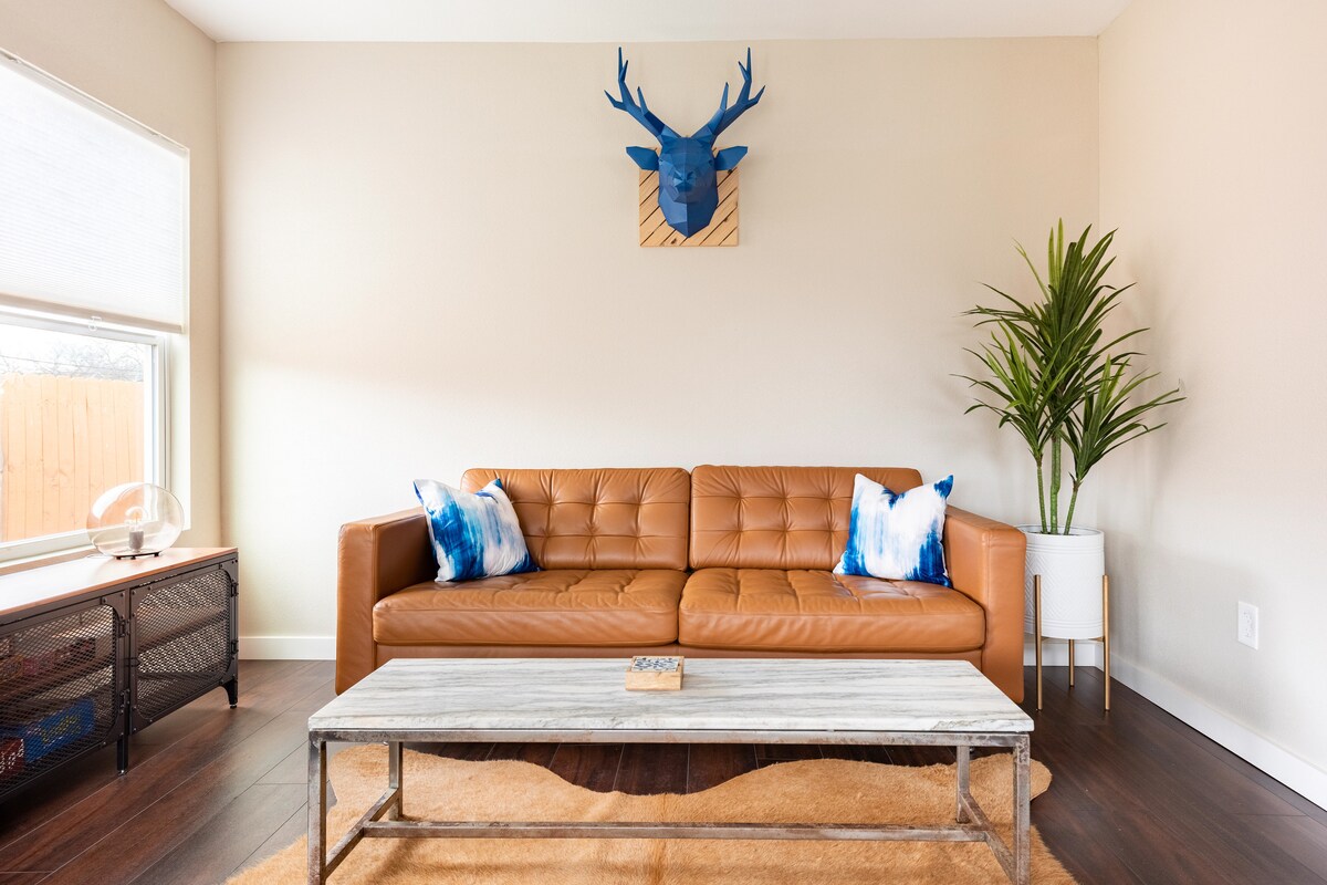 Inizia la giornata nel bagno in marmo di Carrara, che ricorda quello di una spa, con doccia a pioggia e panca. Rilassati sul letto matrimoniale grande nella camera da letto, che vanta anche pavimenti in legno massello di noce. La cucina presenta piani di lavoro in pietra ollare e un'isola in legno di scarto. La camera da letto privata include un letto matrimoniale grande, una cabina armadio, pavimenti in legno massello di noce americano, un ventilatore a soffitto e un termostato individuale per il secondo piano, per garantirti il massimo comfort. Goditi le finiture di alta qualità del nostro bagno in marmo di Carrara, simile a quello di una spa, con doccia a pioggia e panca. Il soggiorno vanta un divano Joybird con materasso estraibile in memory foam queen-size per dormire sonni tranquilli. La cucina dispone di mobili in legno su misura, banconi in pietra ollare, elettrodomestici in acciaio inossidabile e un'isola in legno di recupero con posti a sedere. Ventilatori a soffitto ovunque per mantenerti al fresco durante le estati calde. Sono sempre disponibile tramite messaggio o telefono. Vivo nella casa principale della proprietà e posso essere raggiunto di persona, se concordato. Fai una passeggiata di 2 isolati tra hamburger, birrerie, sushi, gelati, caffè e tè gourmet e persino uno speakeasy. I bambini adoreranno il parco giochi in loco presso The Friendly Spot. Vai a correre lungo il sentiero lastricato del fiume San Antonio e goditi le viste panoramiche. Chiedici dei nostri posti preferiti! San Antonio offre diversi modi per spostarsi. Oltre a raggiungere a piedi molti ristoranti e attrazioni, ci sono noleggi di biciclette tramite Uber Jump e scooter di diverse aziende, nonché brevi corse Uber e Lyft.