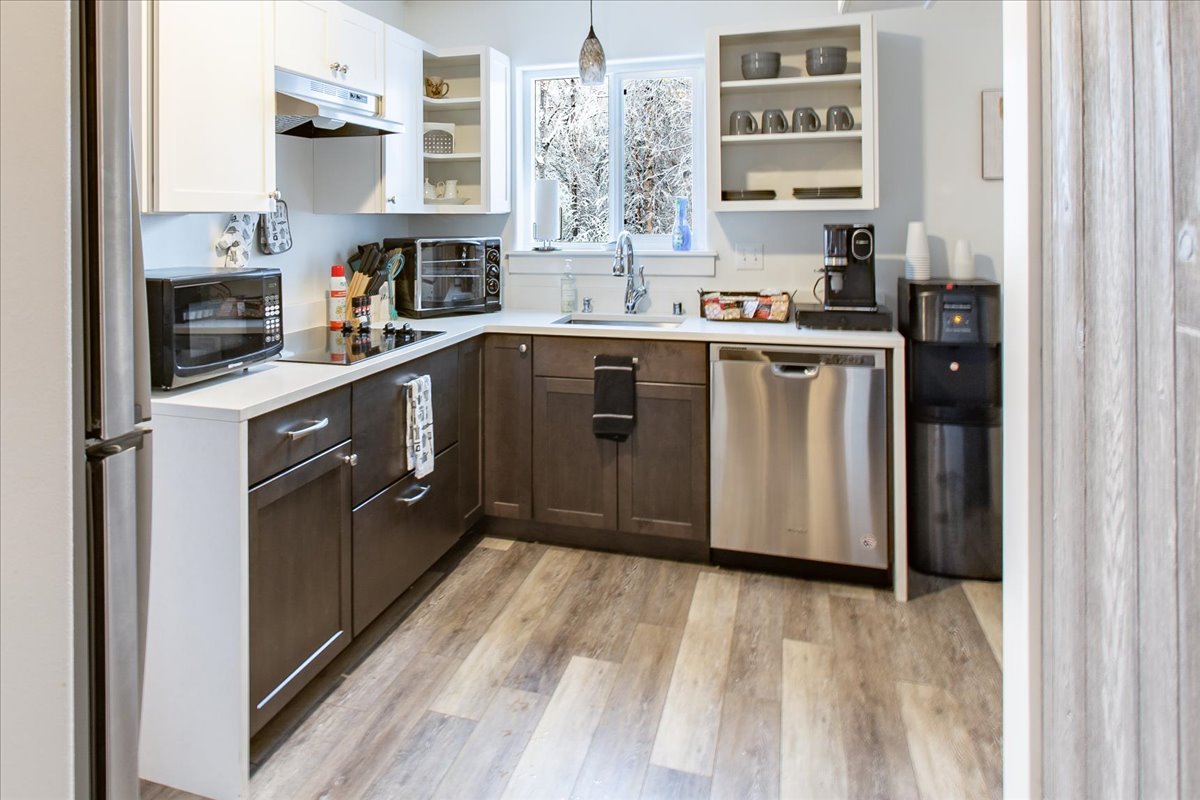 La boa! Immerso tra pini imponenti e cespugli di bacche selvatiche, questo accogliente chalet si trova nel cuore di Juneau. La casa a forma di A degli anni '80, ristrutturata, con 2 camere da letto e 1 bagno, presenta un'estetica calda e accogliente. Progettato pensando agli ospiti, l'interno luminoso ti accoglie con opere accattivanti di artisti dell'Alaska e dettagli accoglienti. Gli arredi confortevoli, la cucina ben attrezzata e l'ambiente tranquillo ti faranno sentire come a casa. Rilassati nella sauna a botte in legno di cedro, perfetta dopo una giornata di avventura!
