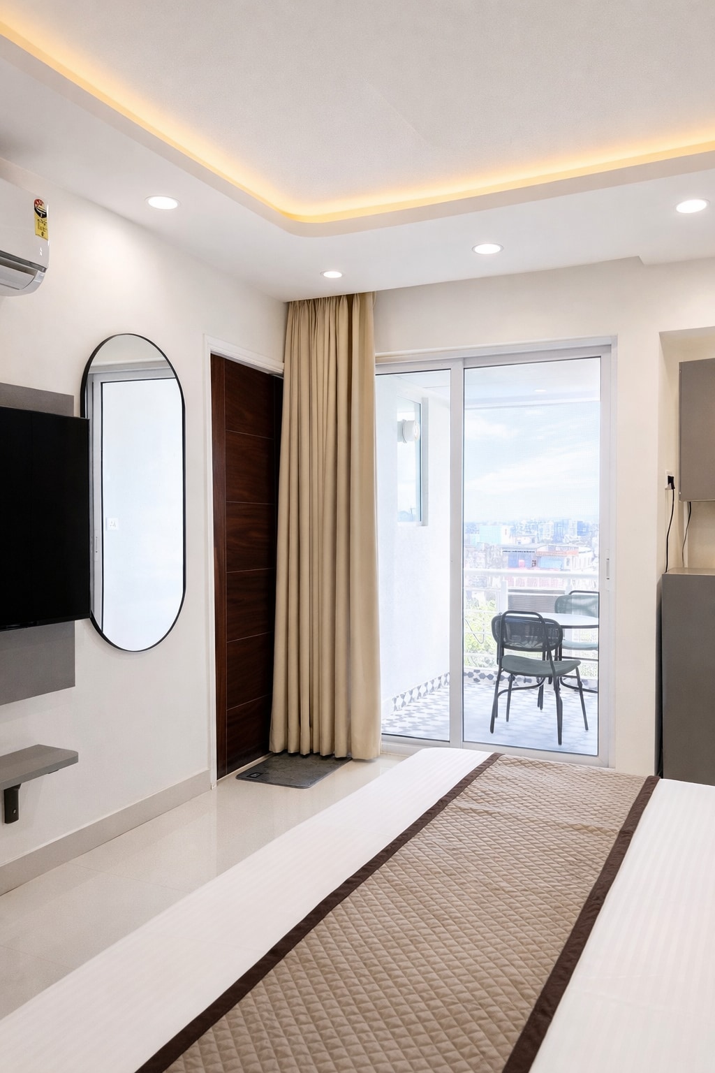 The Pink Peacock Stays 3.0: monolocale di lusso con balcone | Jaipur centro | Vicino alla stazione ferroviaria, alla stazione della metropolitana, alla stazione ferroviaria di Jaipur Junction e alla fermata degli autobus di Sindhi Camp. Svegliati nel cuore di Jaipur con tutto a pochi passi: metropolitana, stazione ferroviaria, bar, mercati e le attrazioni più iconiche della città. Questo elegante monolocale di lusso con balcone offre la combinazione perfetta di posizione privilegiata, comfort e stile di vita moderno, rendendolo un soggiorno ideale per coppie, viaggiatori e ospiti in viaggio per lavoro che esplorano la Città Rosa.