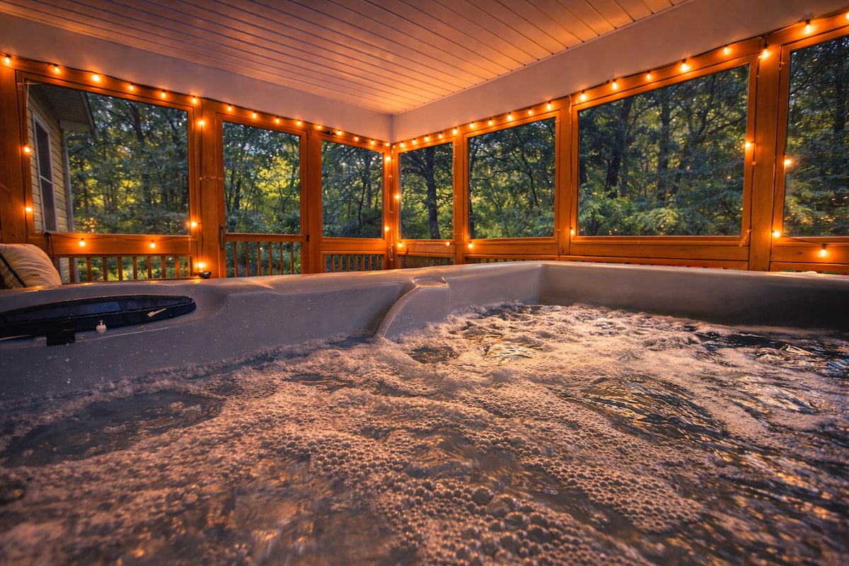 Fuggi in un accogliente rifugio autunnale vicino a Kalahari, Mount Airy Casino, Crossings Outlets, Lake Wallenpaupack e Tobyhanna State Park a 2 miglia di distanza con fogliame autunnale e aria di montagna, vista sul lago, fauna selvatica e punti di picnic. Situato su una strada privata accidentata. Questo rifugio in stile spa ha una vasca da bagno, doccia a pioggia, luci intelligenti, cucina con piano cottura intelligente, letti morbidi, specchi a LED con sincronizzazione musicale e divertimento arcade retrò. Perfetto per coppie, vacanze di compleanno o famiglie in cerca di un soggiorno tranquillo sui Poconos con servizi moderni.