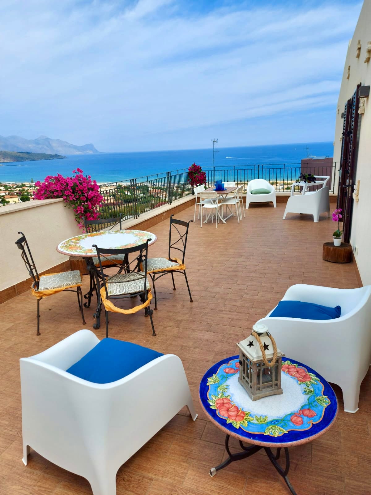 La Terrazza del Golfo, di nuova costruzione è vicino alla spiaggia, immersa nella rigogliosa vegetazione siciliana e offre una magica esperienza di pace e relax. Il parcheggio è gratuito e privato. È recintata, indipendente, con ottime finiture e svariati confort Smart tv, aria condizionata, zanzariere, Wi-Fi. La terrazza di 45 mq offre una vista panoramica mozzafiato sull'intero golfo di Castellammare da San Vito a Punta Raisi. Supermercati, bar, ristoranti, servizi sono a 2 minuti di macchina.