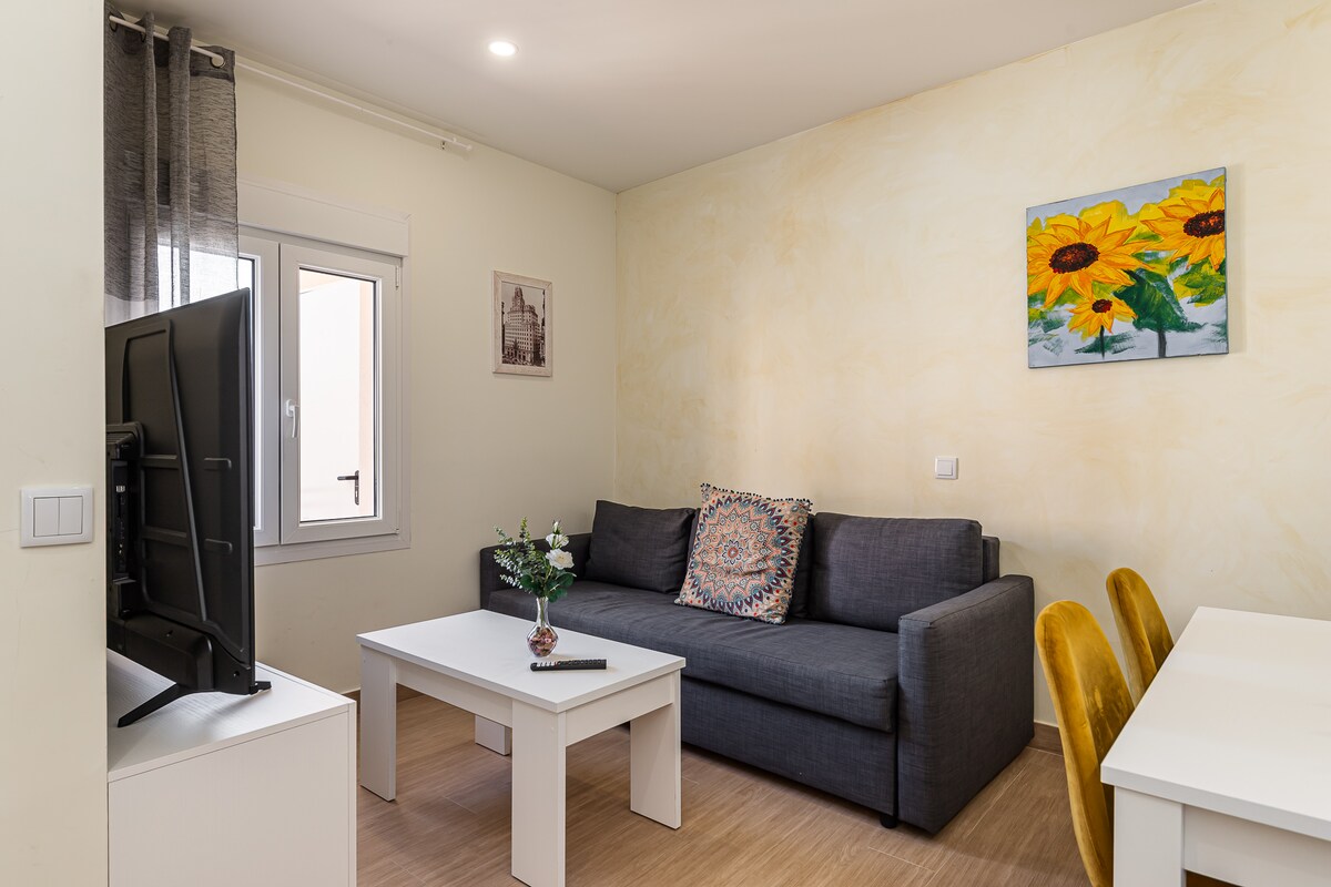 L'appartamento Sinagoga 6 si trova accanto alla cattedrale e dispone di una terrazza privata di 45 m2 con una magnifica vista sulla sua torre. Occupa il secondo piano e la terrazza di un edificio costruito intorno al 1900. Ha una magnifica vista sulla cattedrale e si trova a pochi metri da via Hombre de Palo, l'arteria principale della città che collega Zocodover con la piazza del Municipio e la Cattedrale. La casa è stata oggetto di un restauro integrale al suo interno.