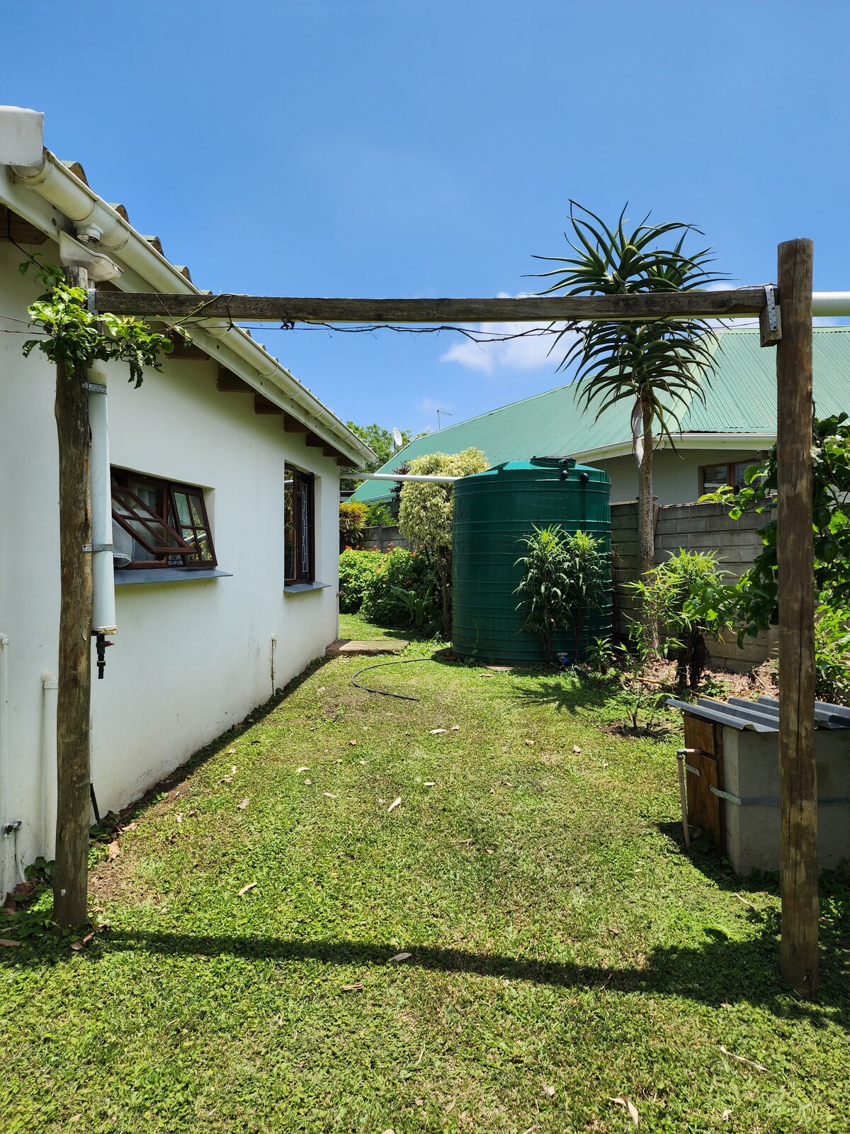 Private spacious garden flat with veranda and slight sea views, nestled between the Red Desert and the Umtamvuna Nature Reserve, a short drive from all amenities and many outdoor activities. The large, minimalistic living area invites you to practise yoga or engage in your favourite creative endeavours. The bedroom with ensuite bathroom invites for a healthy sleep on an orthopaedic queen mattress. The kitchen is equipped with all necessities.A small braai and firewood can be supplied on request
