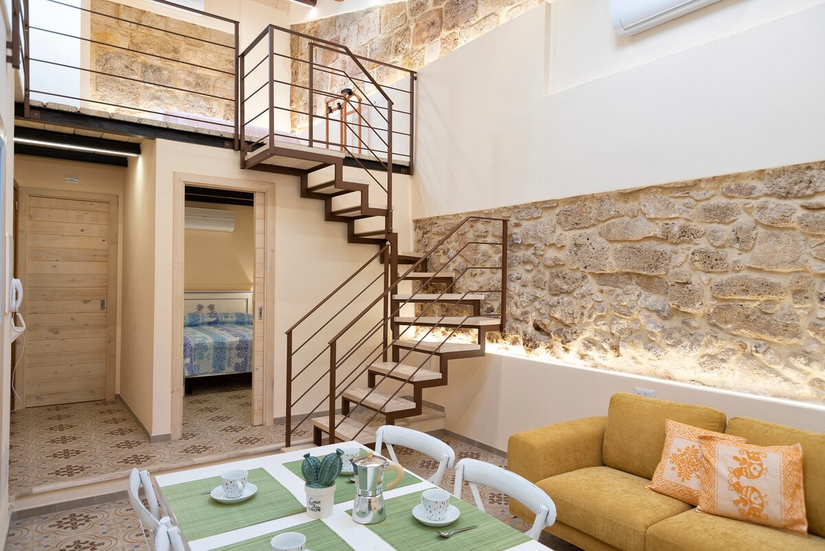 L'appartamento è un accogliente bilocale di 60 mq, modernamente arredato ed accessoriato. Si trova al TERZO PIANO di una palazzina, SENZA ASCENSORE. E' composto da sala con angolo cottura; 1 camera da letto matrimoniale; 1 bagno con box doccia. E' provvisto di lavatrice, lavastoviglie, forno elettrico, a microonde, frigo, freezer, climatizzatori. E' situato a 50 metri dal mare e a pochi passi dal centro storico.