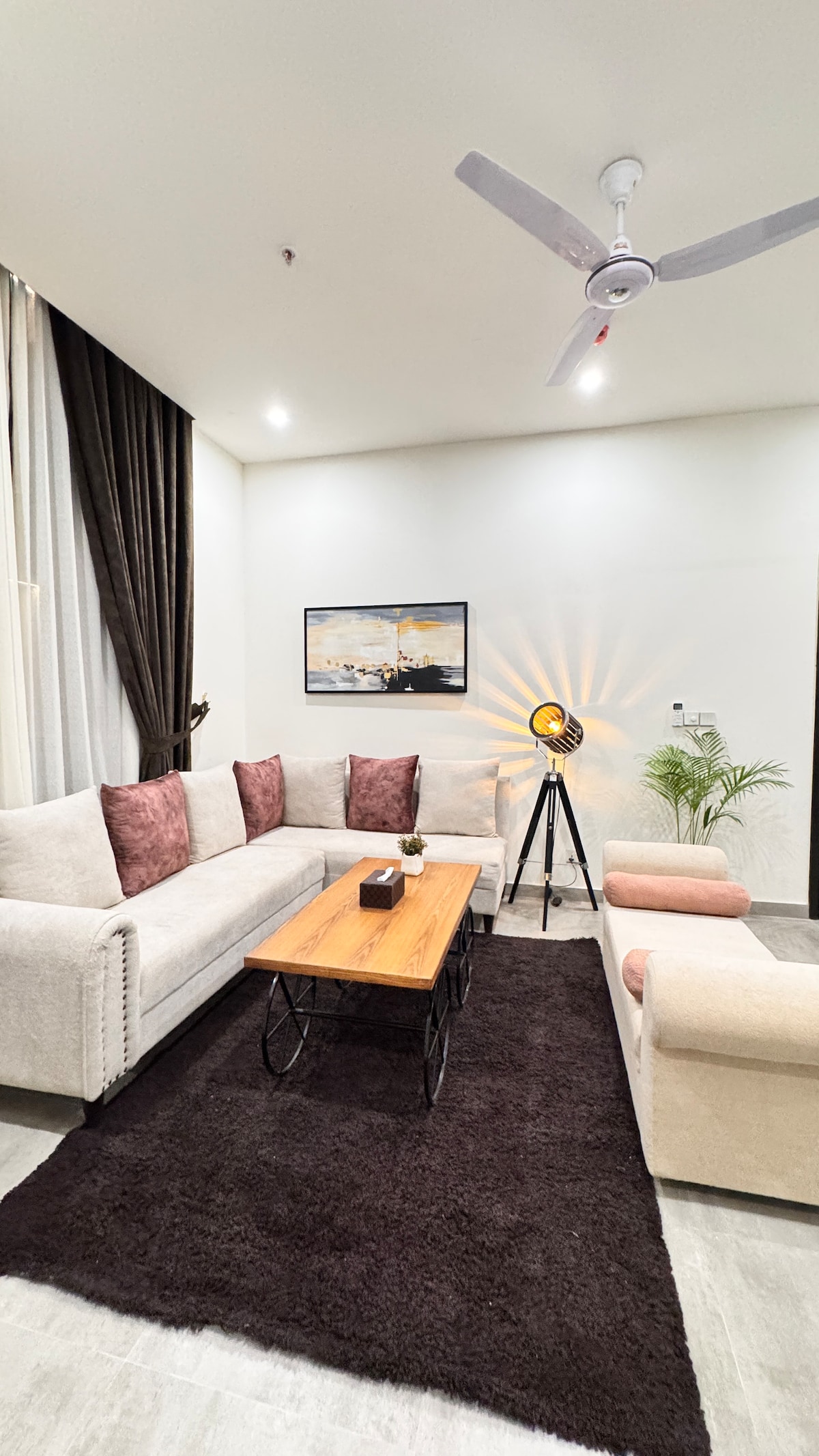 Vivi la serenità in un appartamento d'angolo unico nel suo genere a tema Japandi, situato idealmente nel cuore del centro di Islamabad. L'ampio appartamento (159 m²) presenta un minimalismo moderno, due balconi privati con vista panoramica sulle colline di Margalla e Gulberg Greens, letti comodi, spazio di lavoro dedicato, Wi-Fi a 40 Mbps, un home theater per accoglienti serate di cinema, giochi da tavolo e una cucina a vista completamente attrezzata per cucinare il tuo pasto preferito. Perfetto per famiglie, amici o lavoratori da remoto!