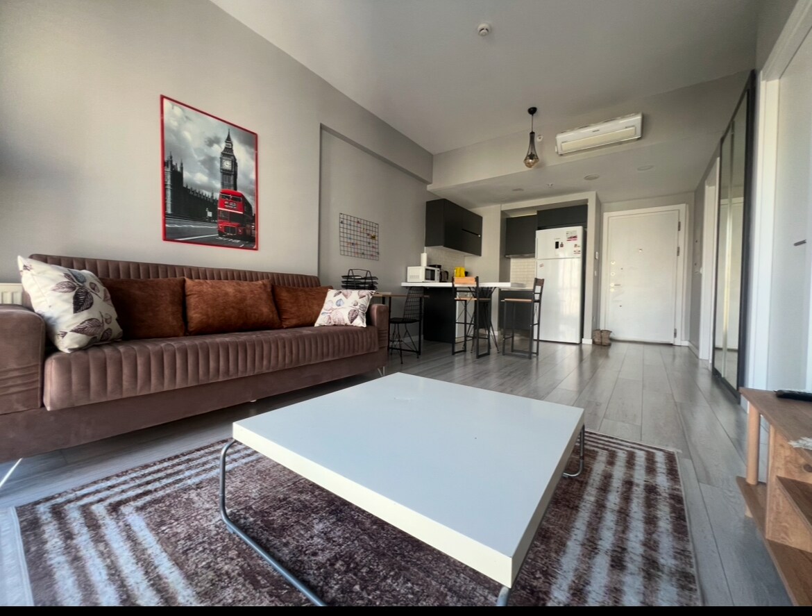 Enjoy a stylish experience in this centrally located apartment. Our apartment can accommodate 3 people with 1 queen size bed at bedroom and a sofa bed at living room. Wi-Fi/Smart TV (you can watch movies for free with an active Amazon Prime account). Indoor parking is available. It has a clear view of the city.14 minutes from TUYAP congress by car. there is many materials at kitchen. The location is central, with many markets, cafes, restaurants, shopping malls, hospitals, and bus stops nearby.