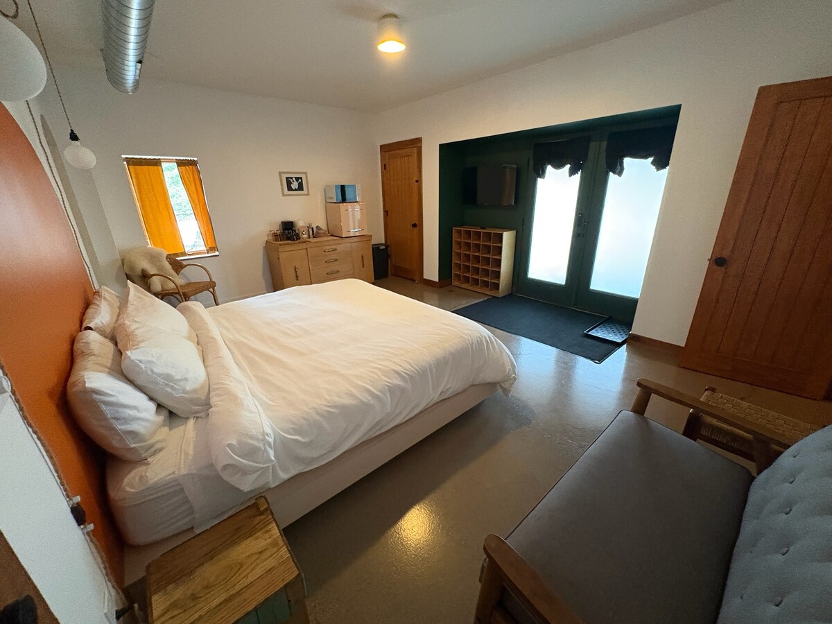 A charming French-inspired studio just steps from downtown Saugatuck. Enjoy a spacious one-room layout with a luxurious bathroom, wet bar, cozy seating area, smart TV, high-speed Wi-Fi, and dedicated dining/workspace—plus on-site parking and washer/dryer access.