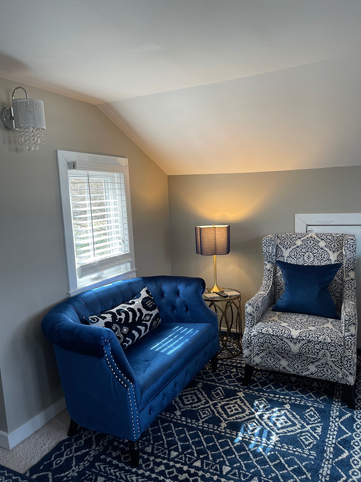 A charming French-inspired studio just steps from downtown Saugatuck. Enjoy a spacious one-room layout with a luxurious bathroom, wet bar, cozy seating area, smart TV, high-speed Wi-Fi, and dedicated dining/workspace—plus on-site parking and washer/dryer access.