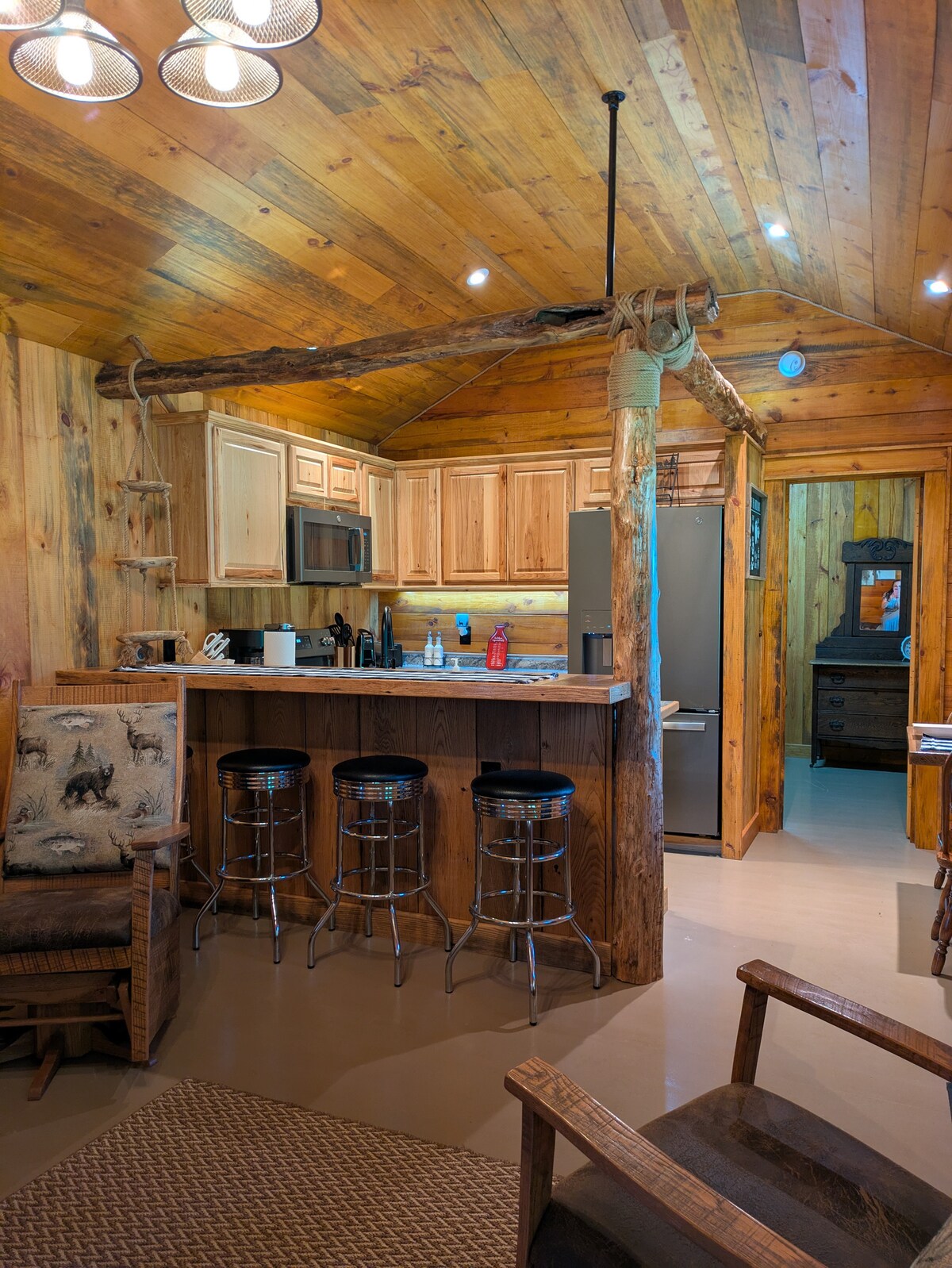La nostra casa è un chalet in legno con 2 camere da letto e 2 bagni. Si trova su 4 acri con accesso/vista sulle montagne e vista sul fiume con facile accesso. Siamo direttamente sul New River, con 100 metri di fronte sul fiume alla fine di una strada privata, a una certa distanza dal vicino più prossimo. Il soggiorno ha un bellissimo camino in pietra con un divano letto e 2 serie di porte finestre che si aprono sul portico anteriore e sull'ampio portico laterale coperto.