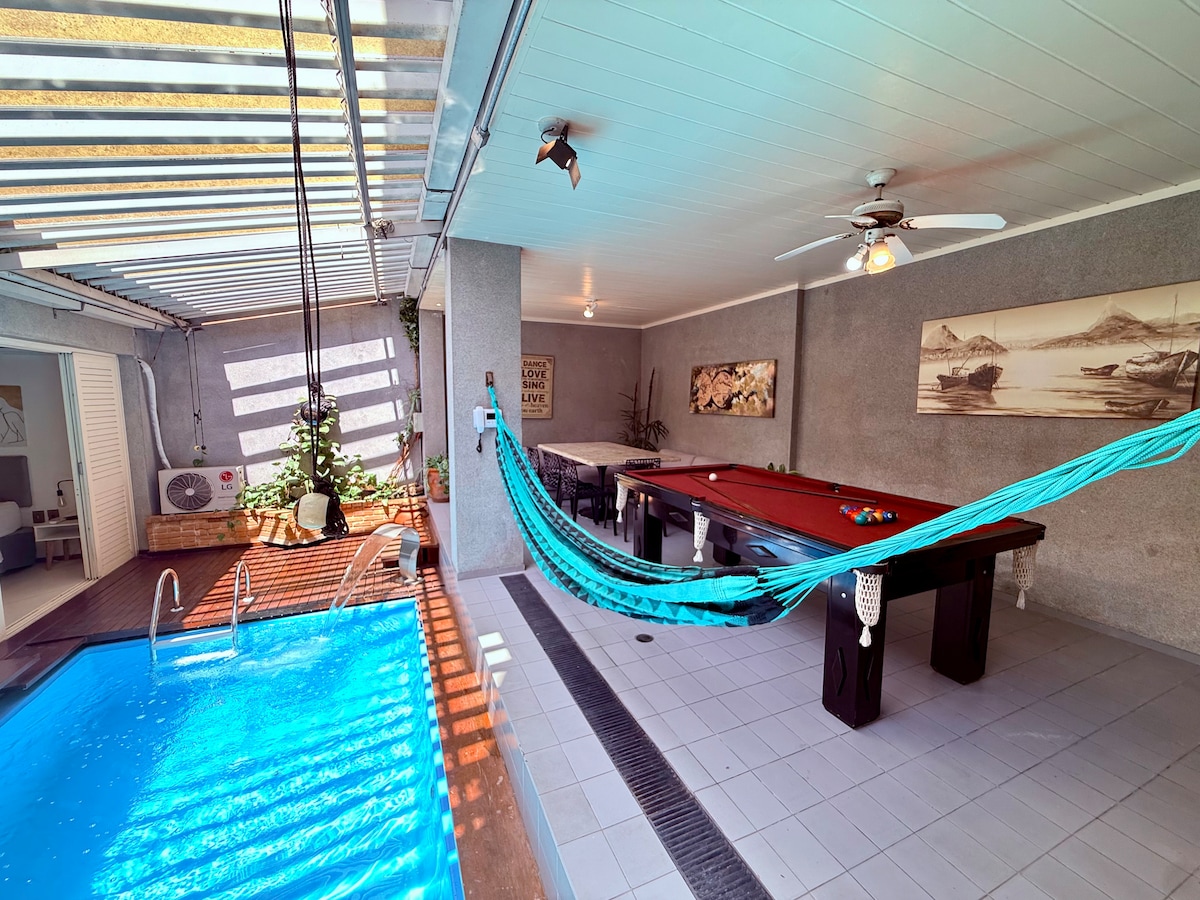 Divertiti con tutta la famiglia in questo alloggio elegante e immerso nel verde. Casa con 2 camere da letto (1 suite) e un'altra camera da letto con 3 materassi singoli Emma di fascia alta, tutta la casa in stile rustico industriale, piscina, area gourmet con barbecue, tavolo in legno massello per 8 posti, vicino alla stazione della metropolitana Praça da Árvore (600 m), lavanderia e mercato esattamente di fronte alla casa, quartiere tranquillo e con tutto nelle vicinanze. Ogni casa è predisposta per il lavoro da remoto, con Wi-Fi in tutta la residenza.