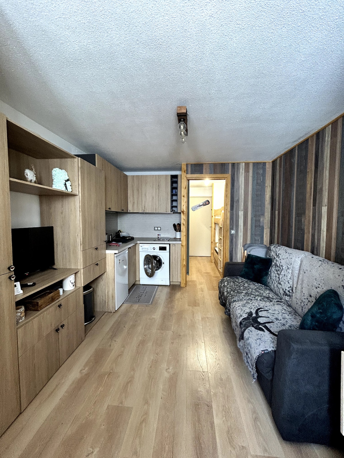Spazioso monolocale, tutti i comfort, completamente ristrutturato, di 38 m2 con terrazza loggia di 8 m2; Splendida vista sulle montagne. Parcheggio privato; WiFi; tranquillo. Cucina completamente attrezzata;Frigo congelatore, lavastoviglie, piano cottura a induzione, forno multifunzione, caffettiera, tostapane, apparecchi per raclette e fonduta; TV connessa. Angolo montagna; WC separato. Grande terrazza loggia expo sud-ovest con tavolo, sedie, poltrona relax, vista super. Quartiere Stelle 1800 m; alla partenza delle piste!