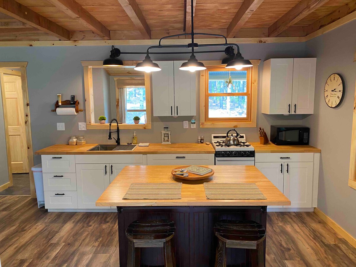 Unplug. Unwind. Connect with nature. Come enjoy our 700 sq.ft. cabin on 6 wooded acres. Fish the trout stream, hike, bike, swim! See hummingbirds hover at the feeder, watch for deer or bald eagles. The outdoor recreational opportunities are endless. Listen to the wind whisper while you sway in the hammock. Play in the treehouse! Escape to the peaceful pines and let whippoorwills sing you to sleep at day's end. Bring your pup and enjoy the 1,200 sq. ft. private dog park.